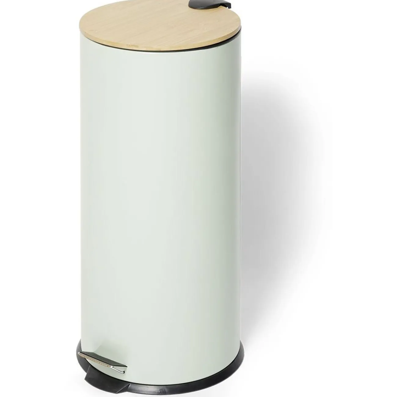 Modernisez votre espace avec cette poubelle de 30L en métal et son couvercle en bambou.