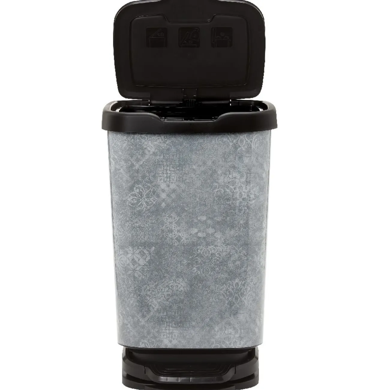 Alliez l’utile à l’agréable en habillant joliment votre cuisine avec cette originale poubelle design mosaïque grise avec couvercle et pédale noirs, d’une contanance de 40 litres.
