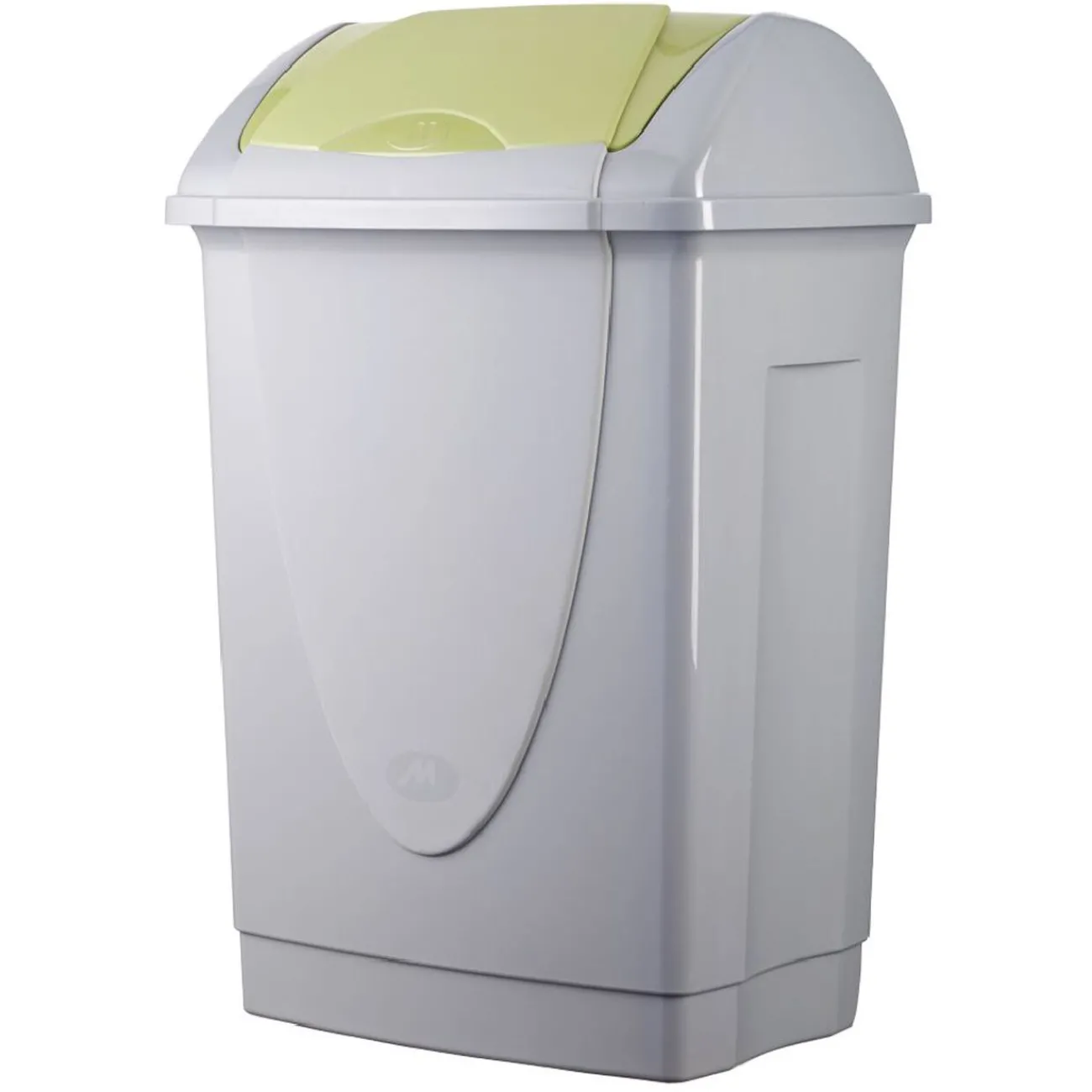 Poubelle avec couvercle à bascule qui facilite son remplissage.
