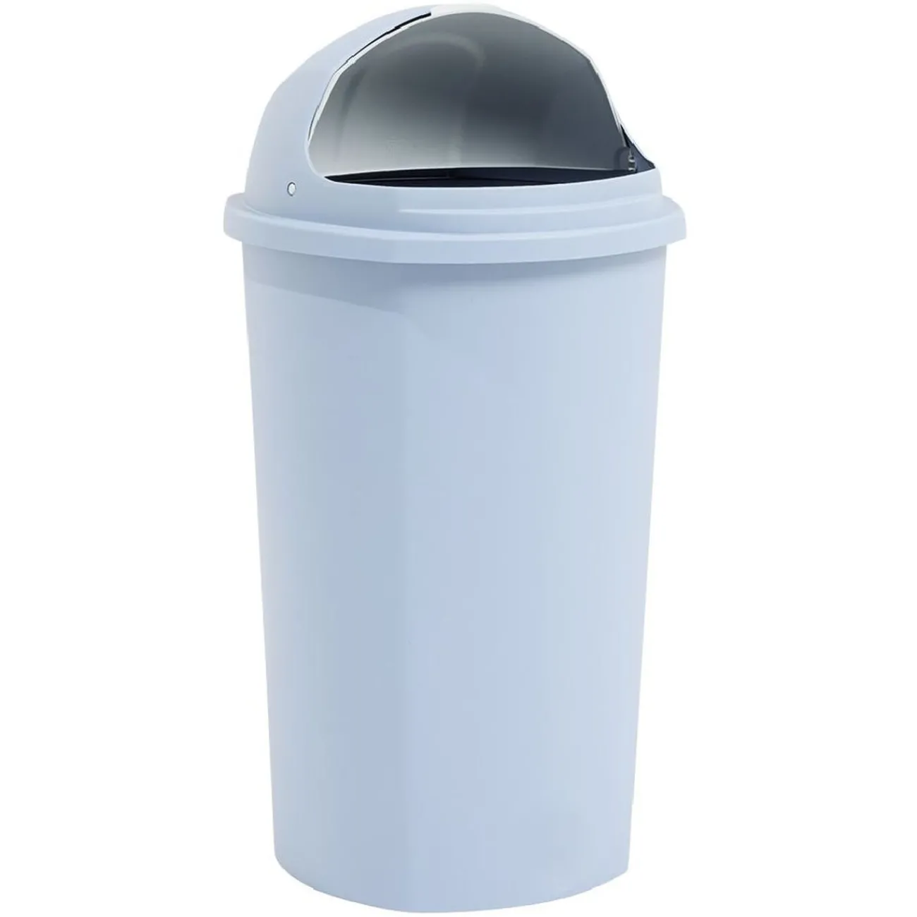 Poubelle à rabat de couleur bleue d’une contenance de 50 litres. D’un design neutre, elle s’intégrera facilement à votre pièce.
