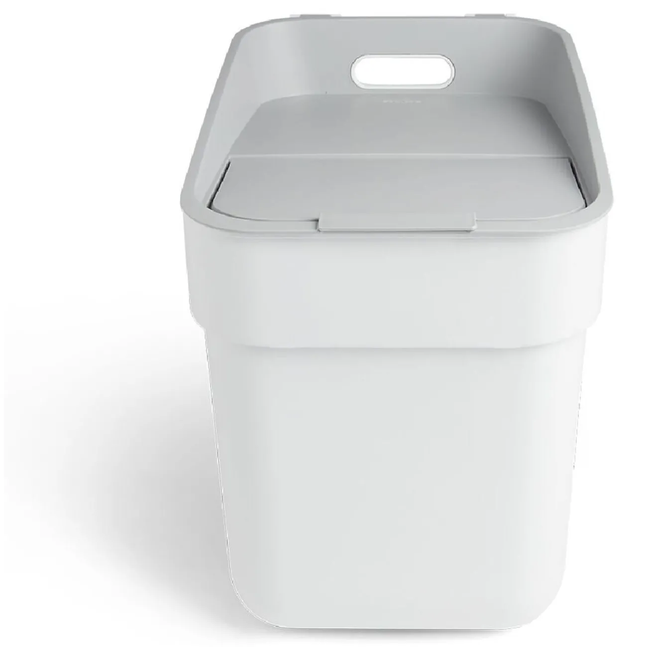 Optimisez votre tri sélectif grâce à cette poubelle blanche munie d’un couvercle gris clair, un choix pratique et esthétique.