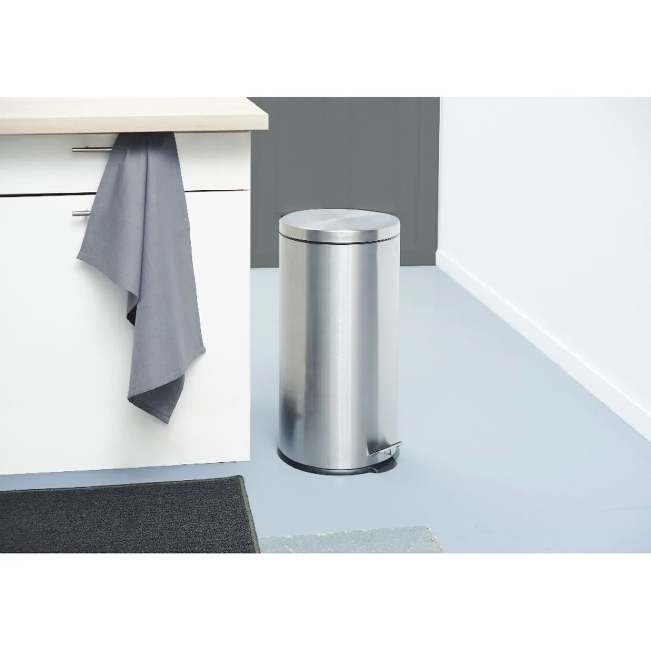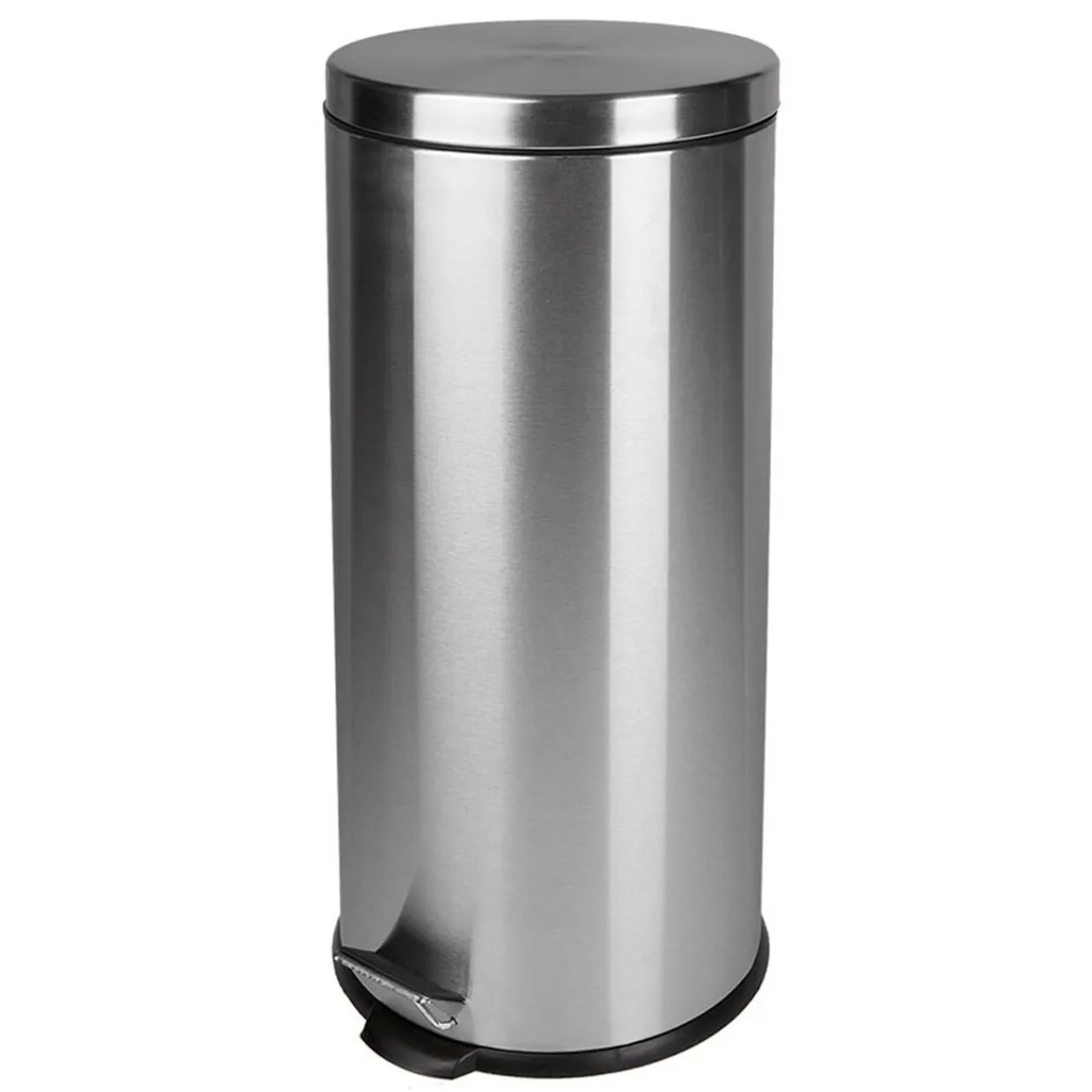 Poubelle ronde à pédale en métal gris, pratique elle se glisse partout!