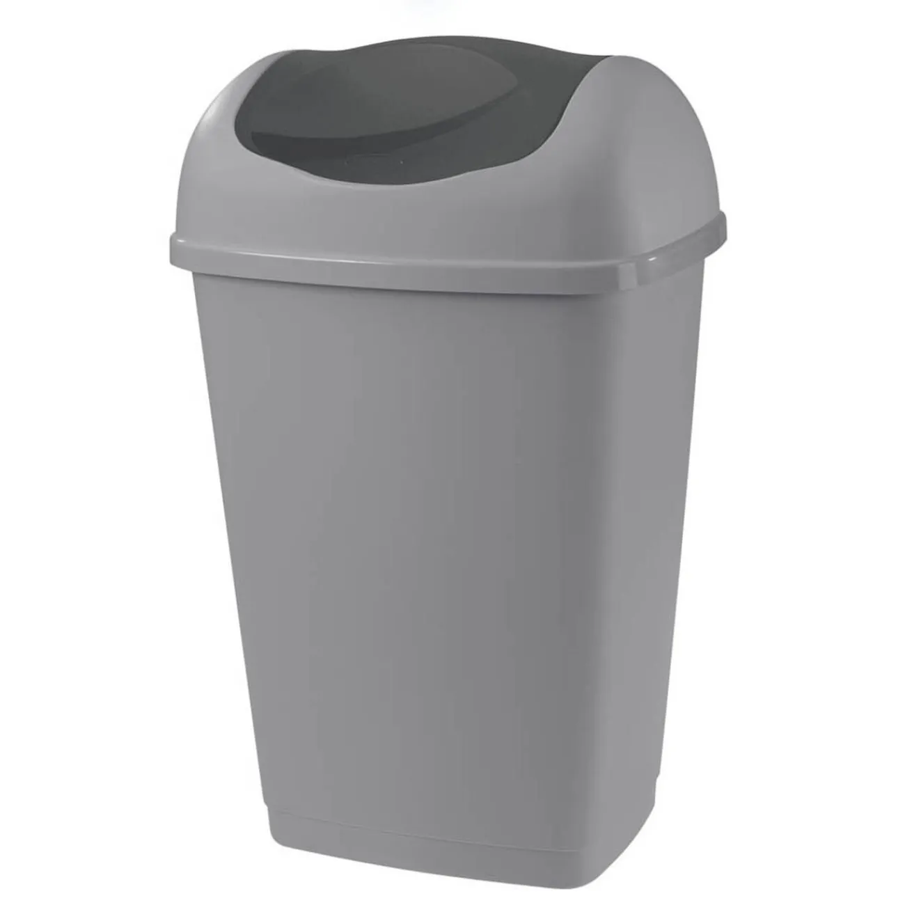 Poubelle grise à rabat d’une contenance de 50 L.