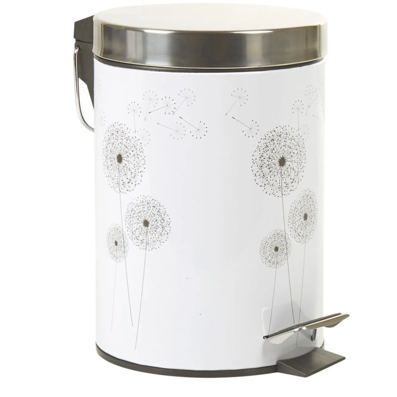 Poubelle de salle de bain blanche motif pissenlit, à pédale.