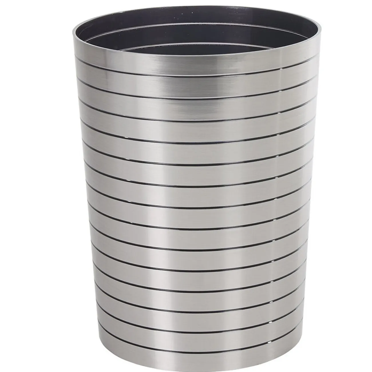 Poubelle de salle de bain de couleur bronze avec décor rayures noires.