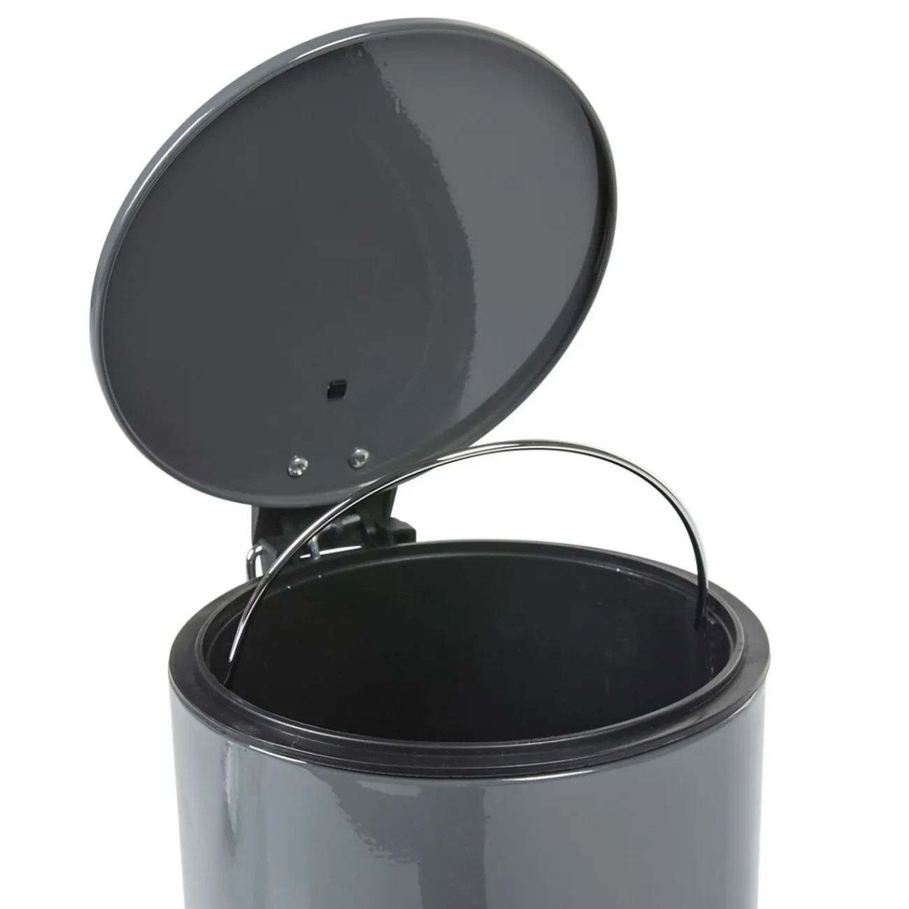 Poubelle de salle de bain de couleur gris foncé à pédale, cont. 3 L, métal.
