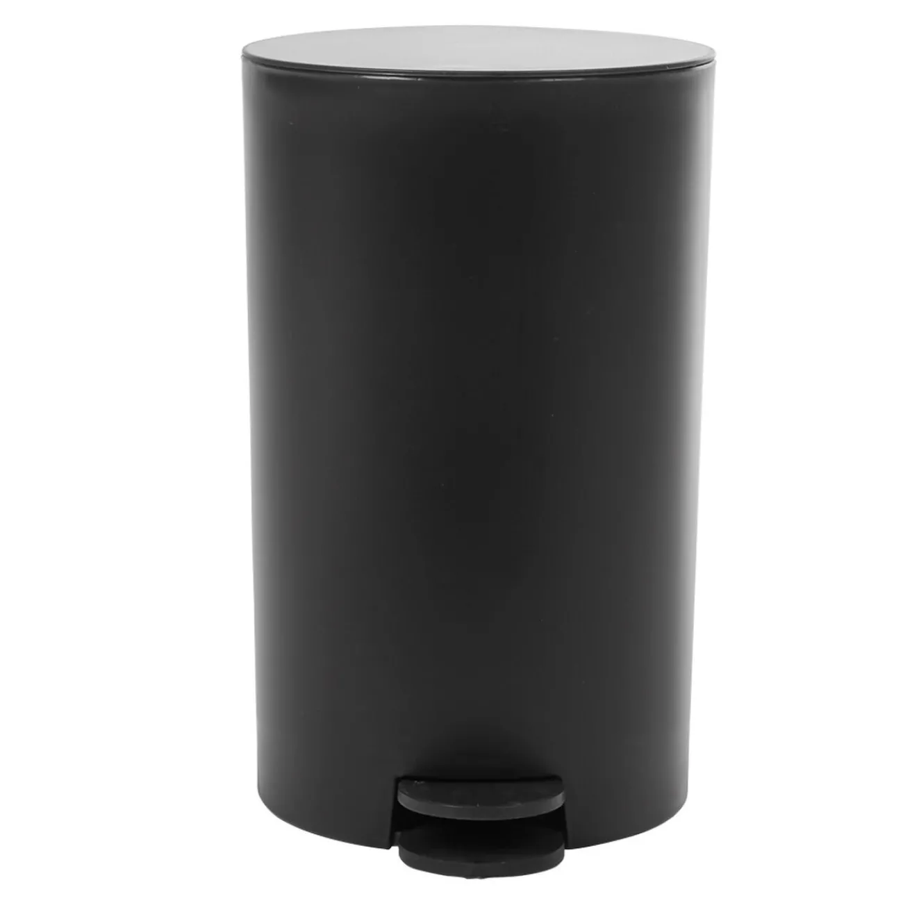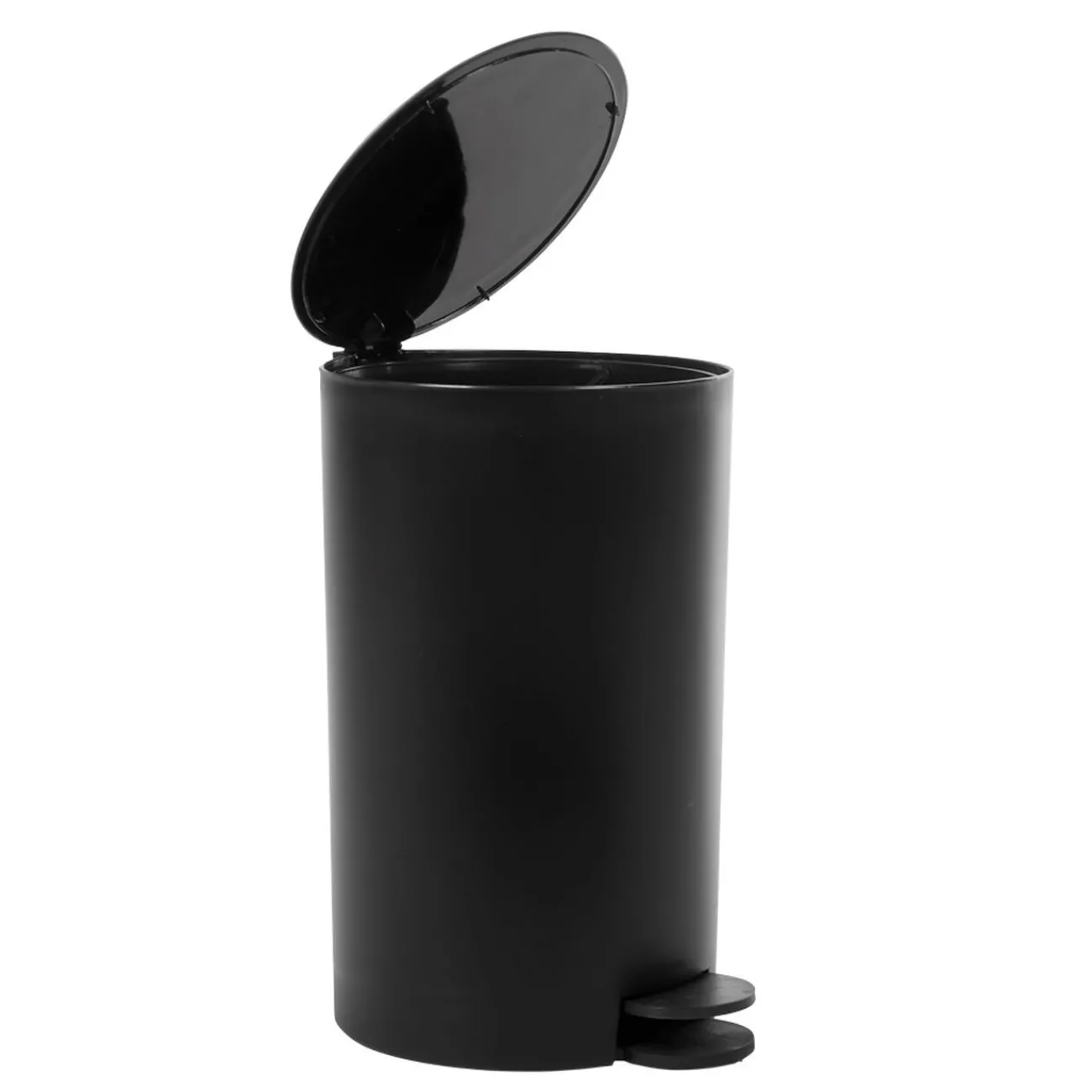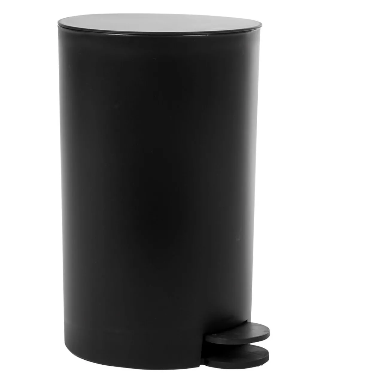 Petite poubelle de salle de bain ronde avec pédale pour ouverture du couvercle.