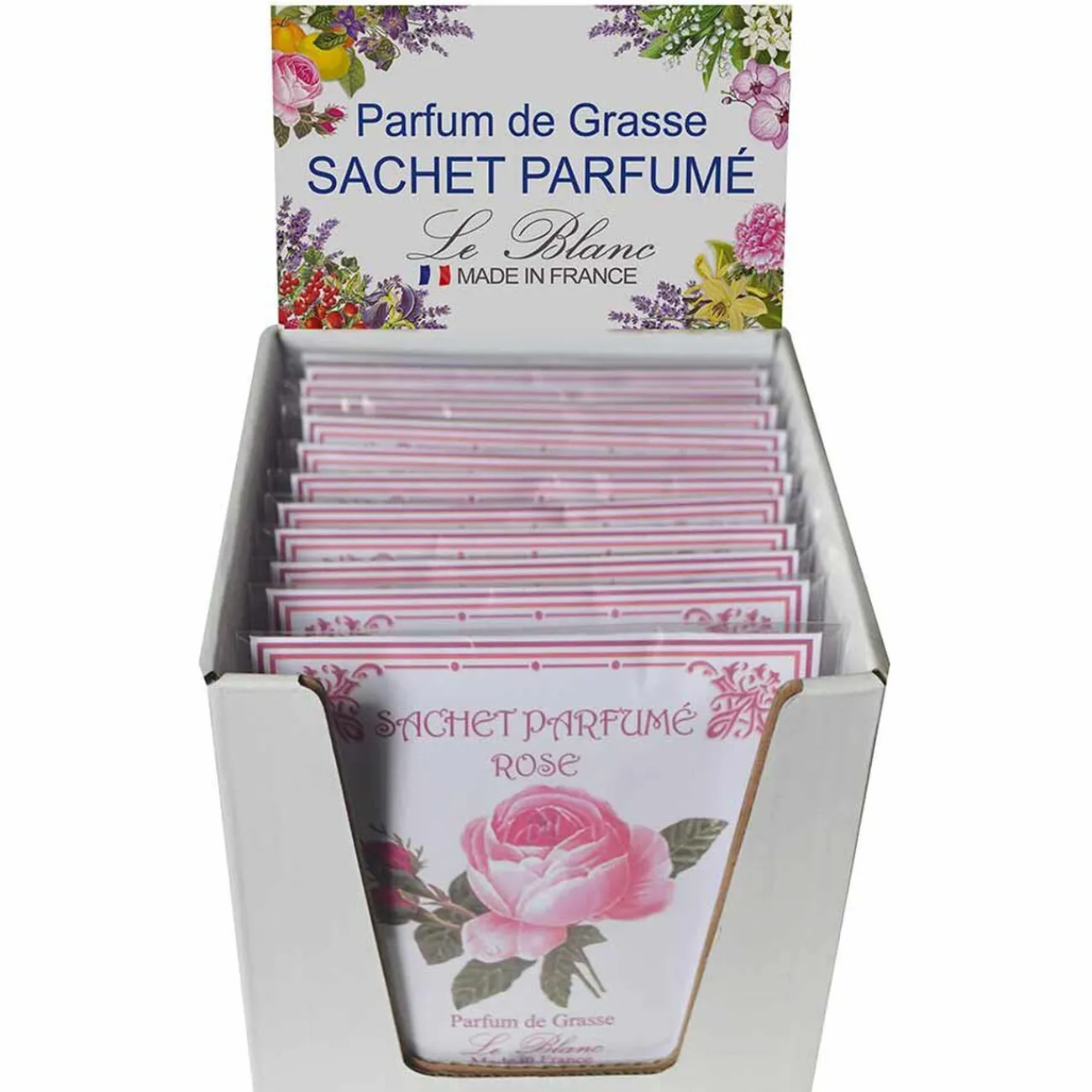 Sachet parfumé senteur rose parfum de grasse Le Blanc.