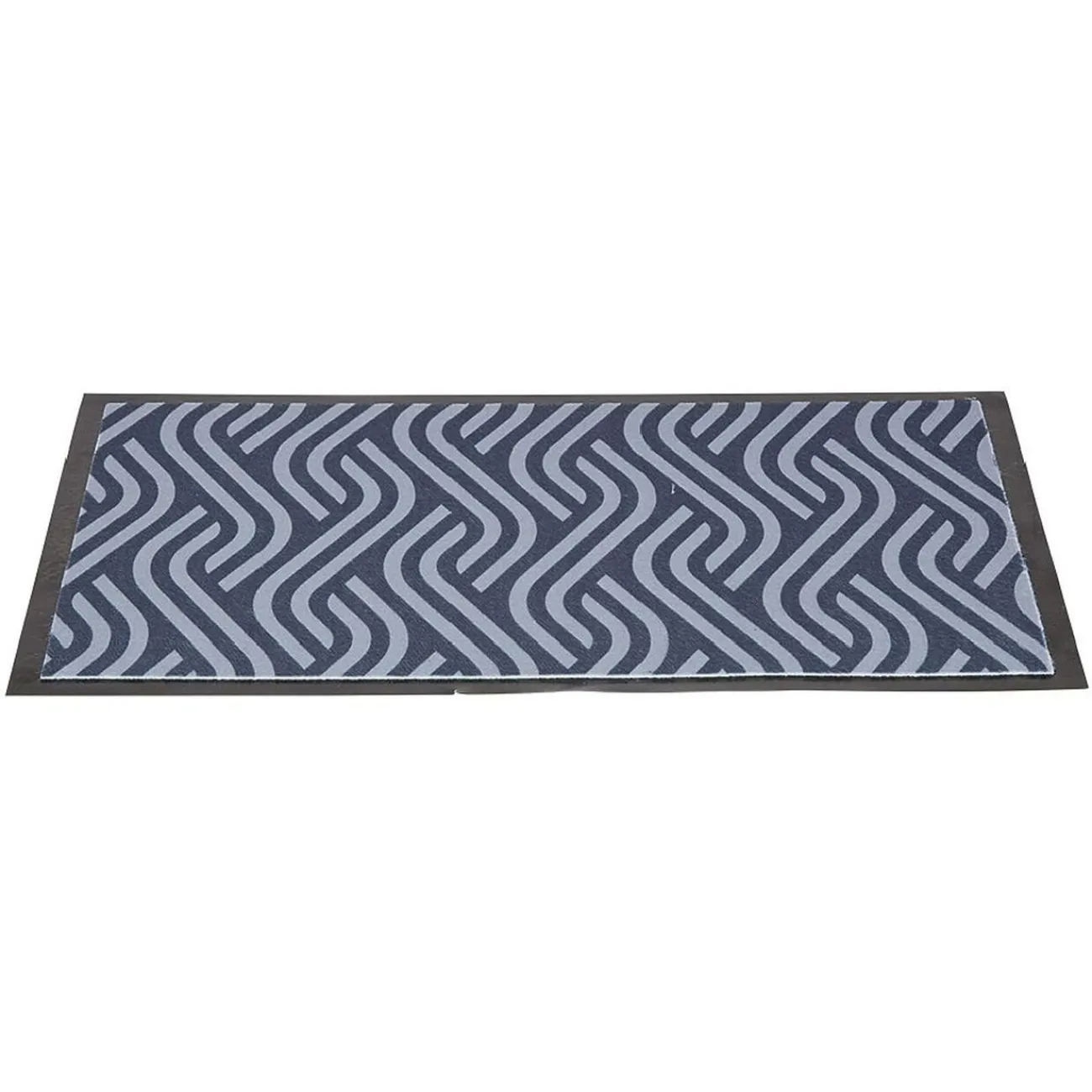 Tapis d’entrée antipoussière de forme rectangulaire avec motifs vagues bleus et contour noir en PVC.