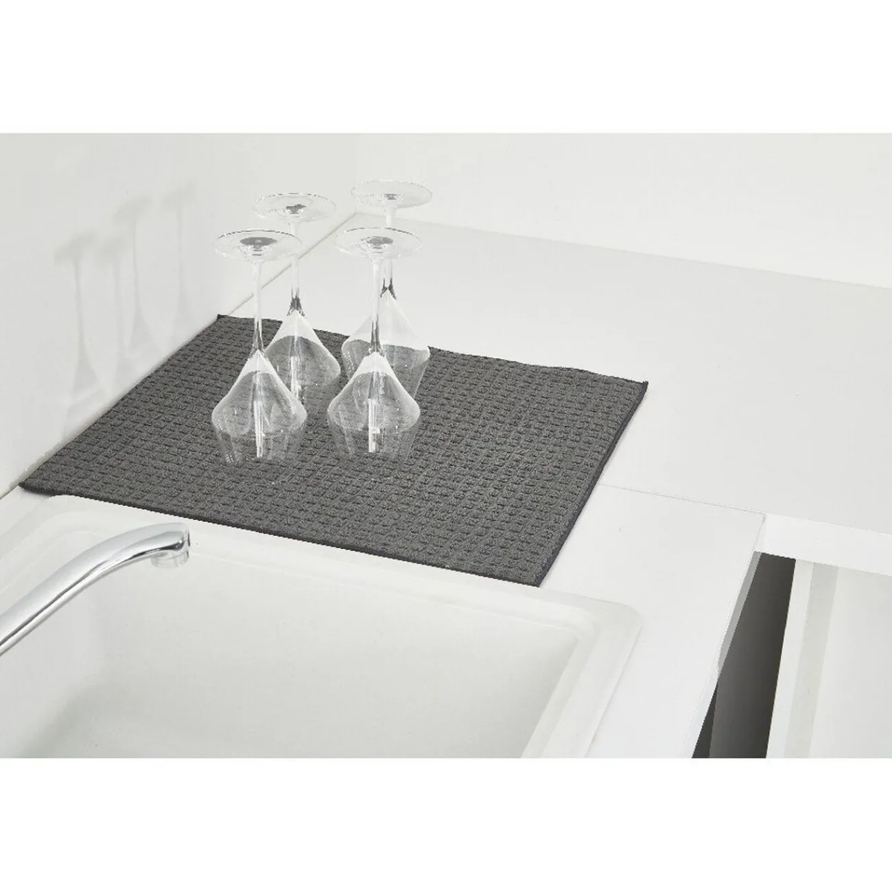 Laissez s’égoutter votre vaisselle en la posant directement sur le tapis ou sur un égouttoir installé dessus !