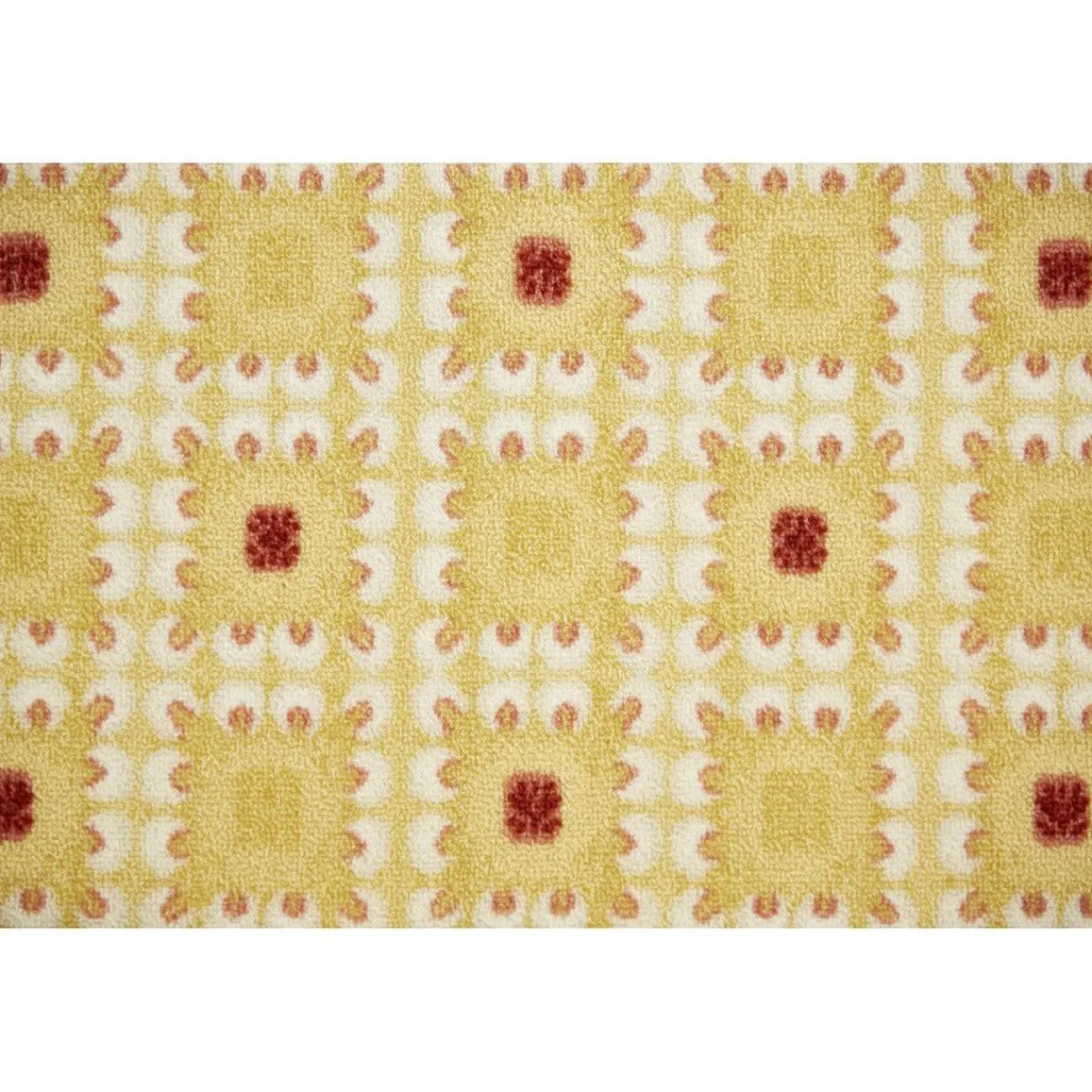 Habillez votre intérieur avec ce tapis d’une longueur de 80 cm. Mis en valeur par ses couleurs douces et chaudes, les motifs pois rouges et carreaux aux lignes blanches sur un fond jaune doux se marieront avec une décoration sobre ou rétro.