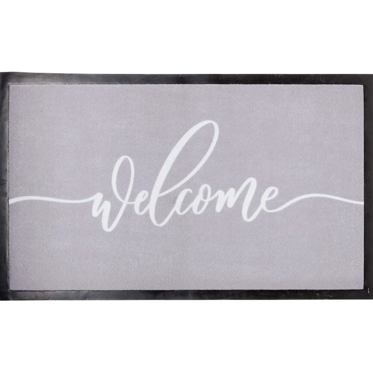 Existe en 3 modèles selon disponibilité en stock magasin : gris inscription « Welcome » blanche, quadrillé orange et blanc, arc de cercle mosaïque tricolore.