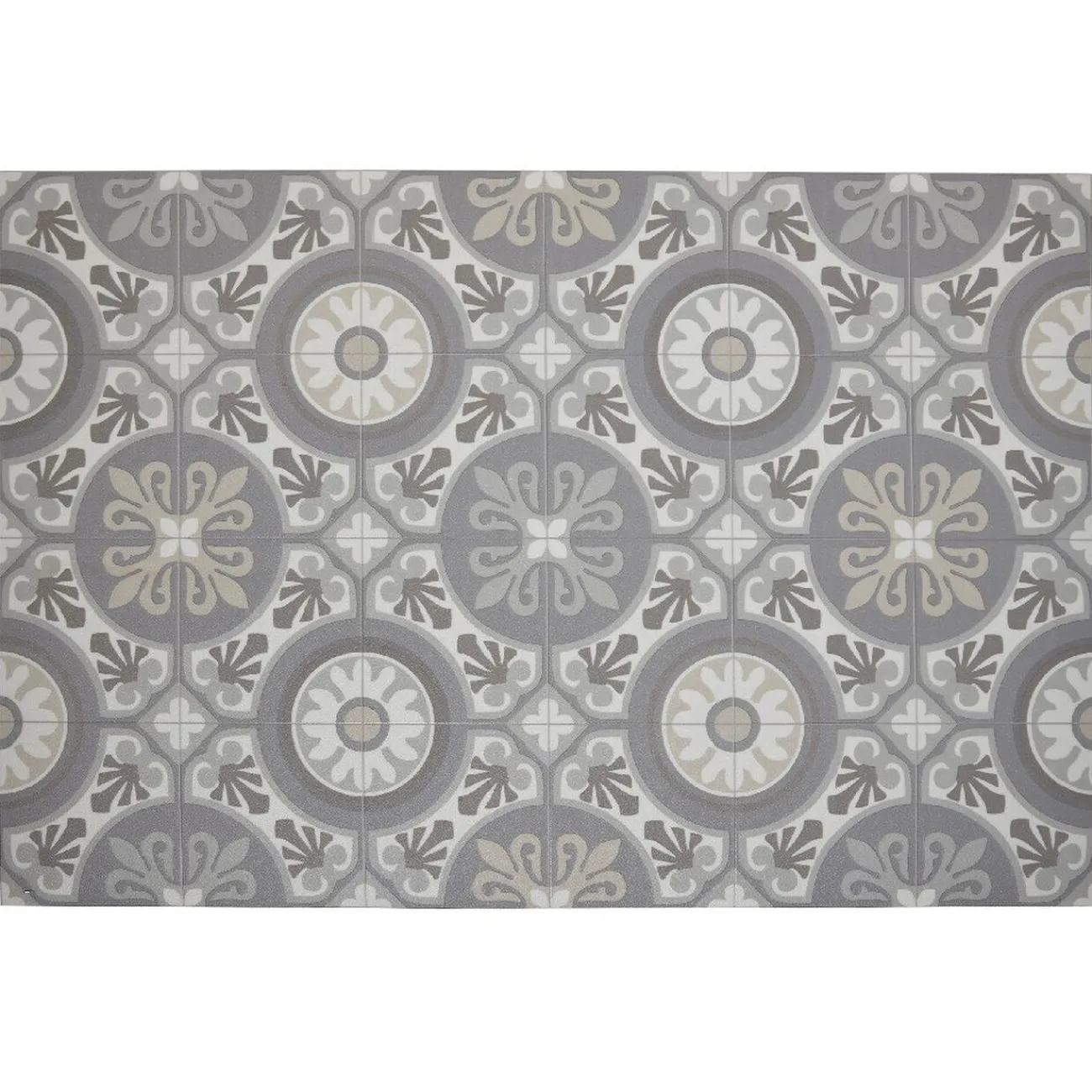 Habillez votre cuisine ou bien votre salle de bain avec ce tapis vinyle décoré de motifs carreaux de ciment gris et blancs.