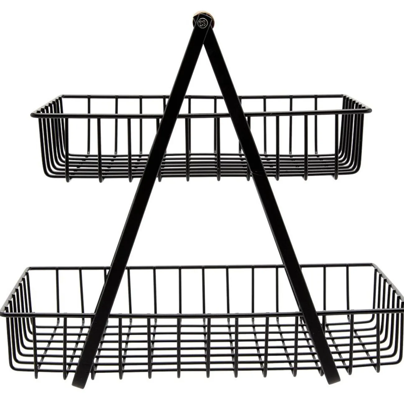 Ce panier à fruits à 2 niveaux de couleur noir avec poignée de couleur naturel apportera une touche originale et industrielle à votre table.