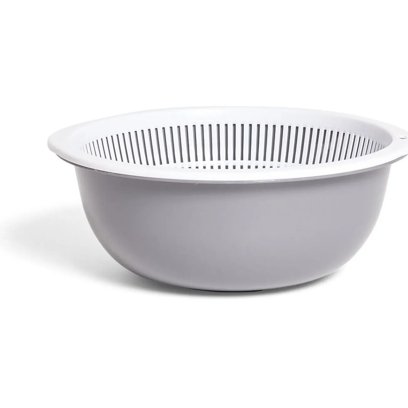 Pratique et astucieux, optez pour cette passoire 2 en 1 avec saladier encastrable en plastique gris d’une capacité de 4,2 litres.