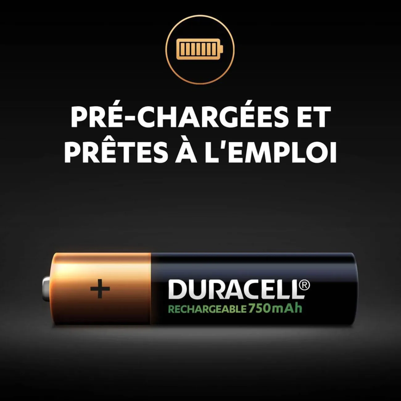 Lot de 4 piles rechargeables Duracell de type AAA 750mAh. Idéales pour alimenter efficacement tous vos appareils du quotidien, les piles AAA Duracell Recharge 750mAh peuvent être rechargées jusqu’à 100 fois. Non utilisées, elles resteront chargées jusqu’à 6 mois.