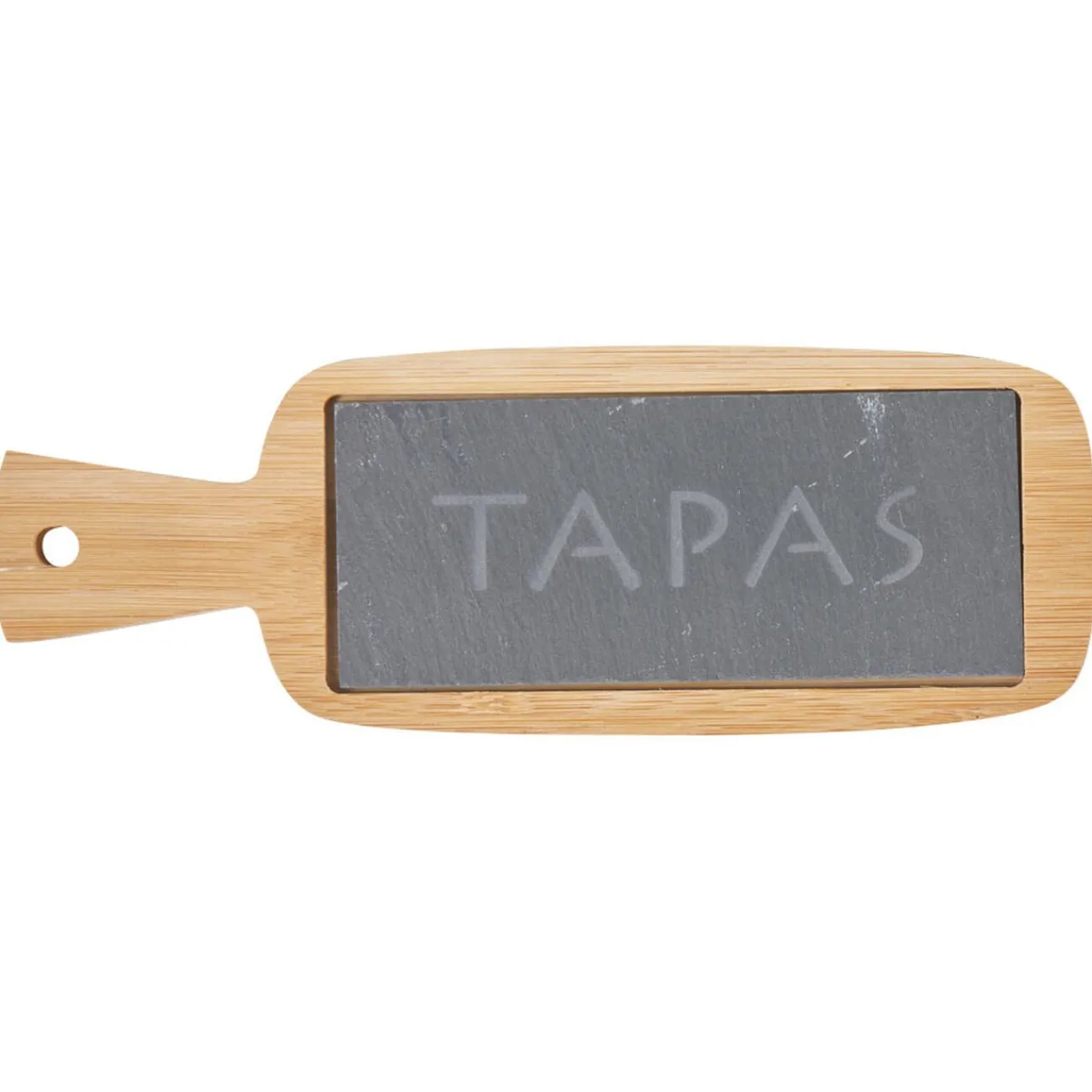 Planche à découper en bambou avec surface en ardoise design tapas, idéal pour la préparation de vos recettes d’apéritifs entre amis.