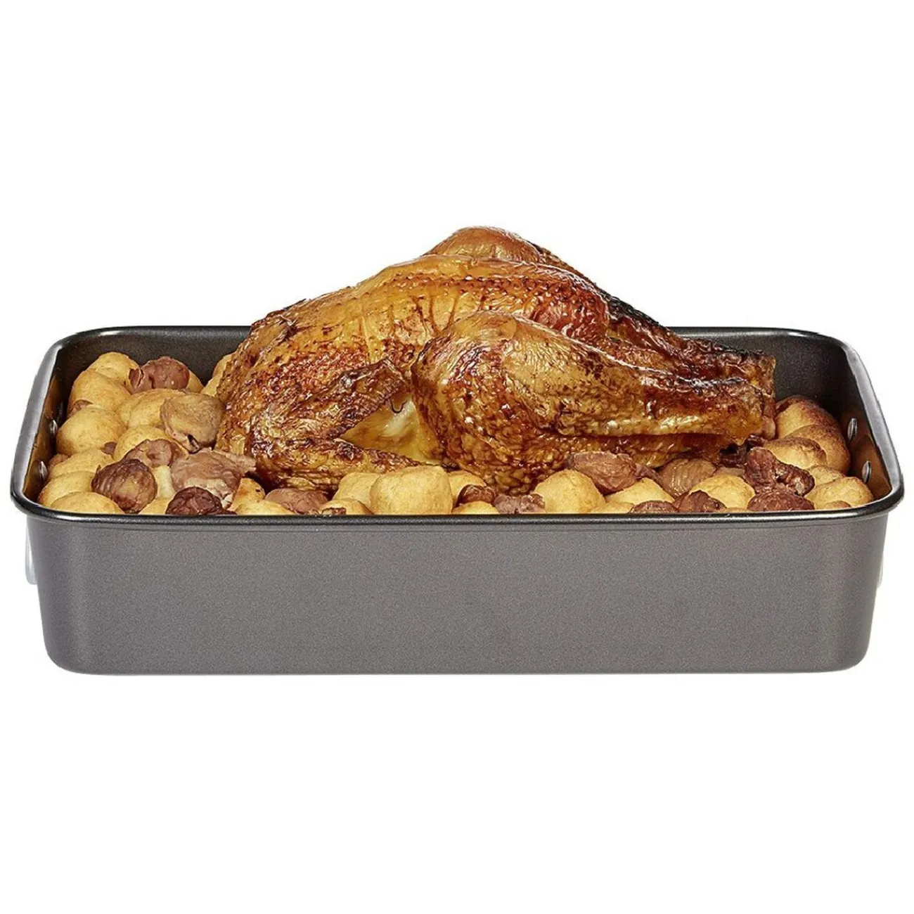 Grand plat à four rectangulaire en métal avec double poignées, idéal pour la cuisson de tous vos mets familiaux.