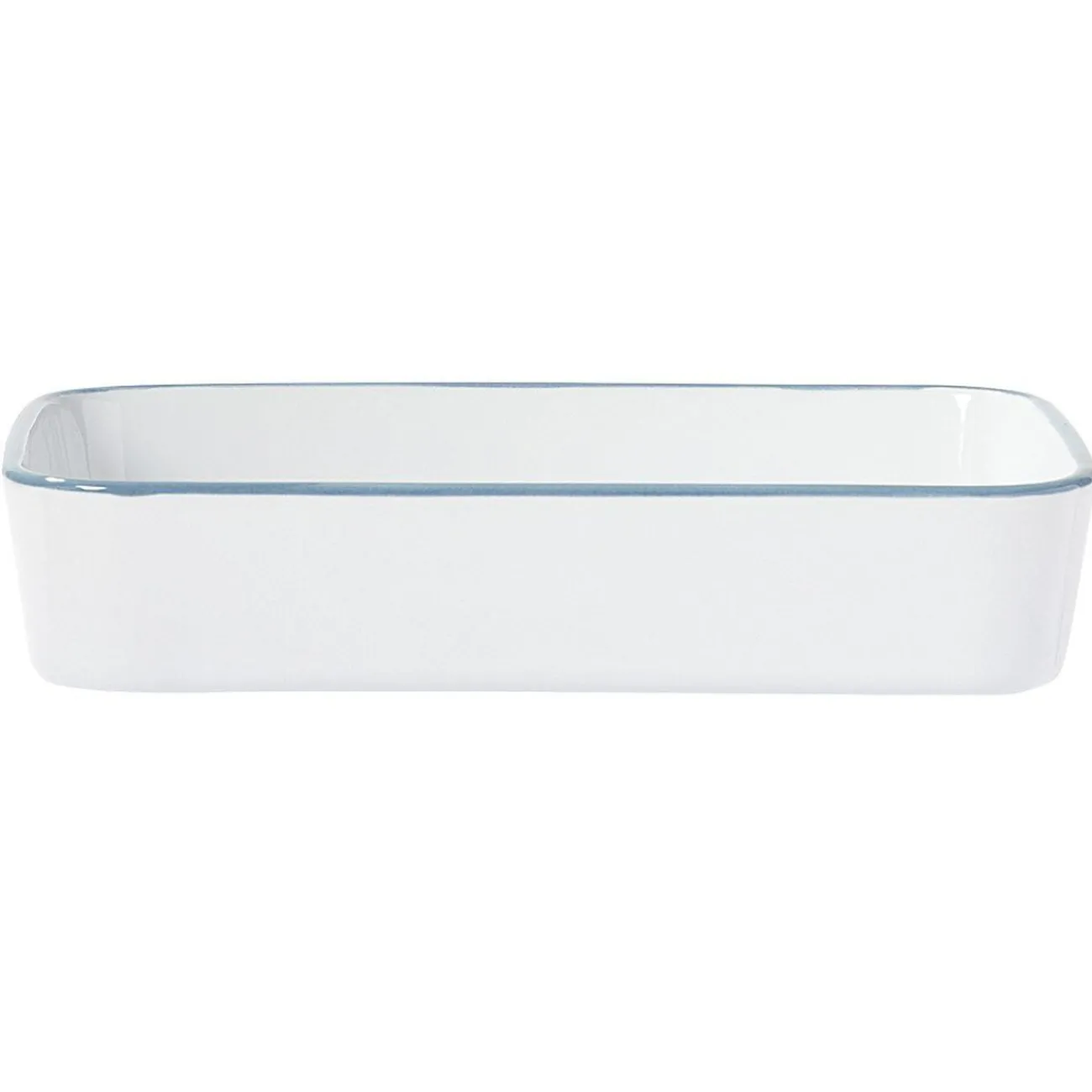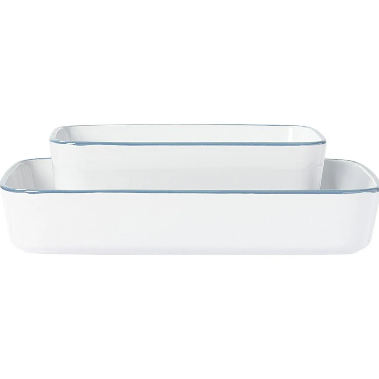 Préparez de délicieux repas à l’aide de ces deux plats rectangulaires blancs avec bordure bleue.
