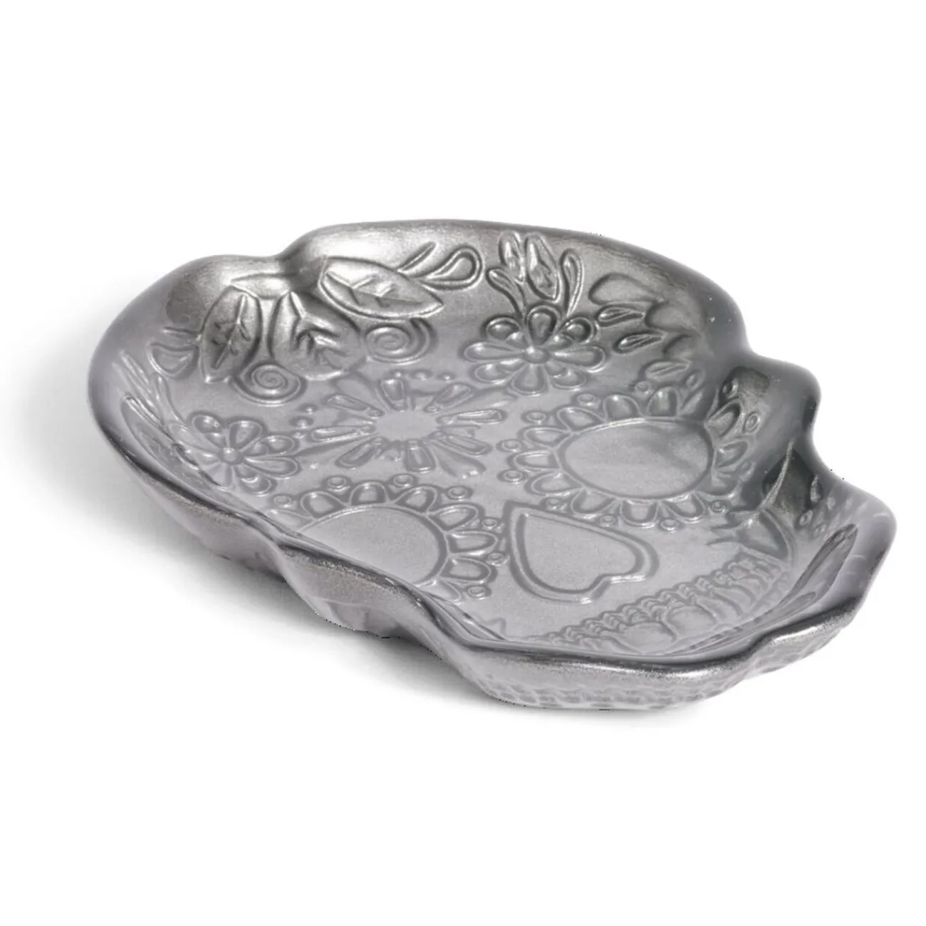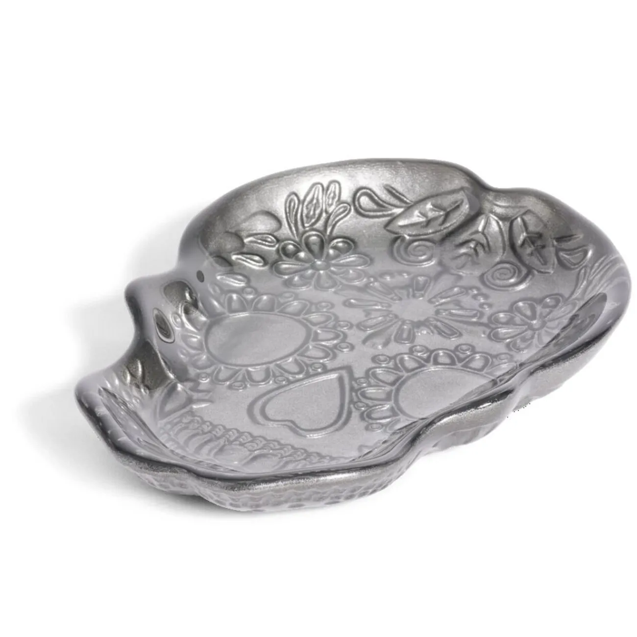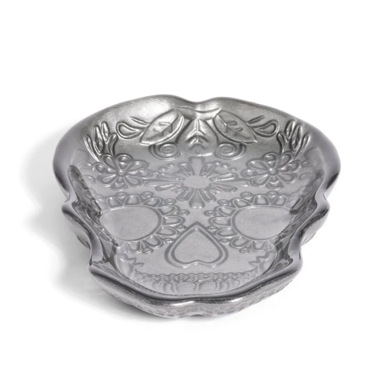 Transformez votre table en une scène d’Halloween tendance avec ce plat noir en forme de tête de mort mexicaine.