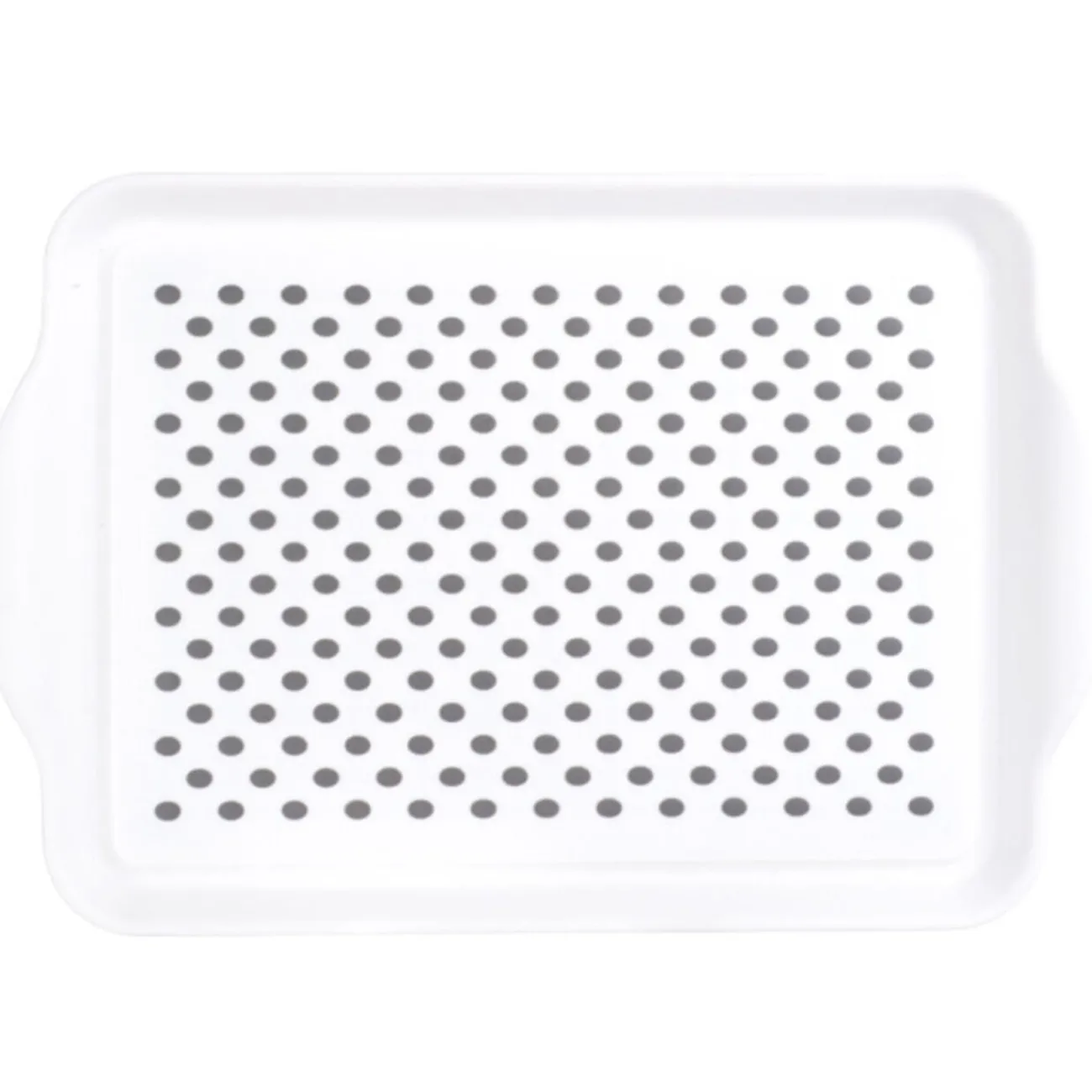 Plateau antidérapant en polypropylène, blanc avec des picots gris. Dimensions : 40,2x27x3 cm.