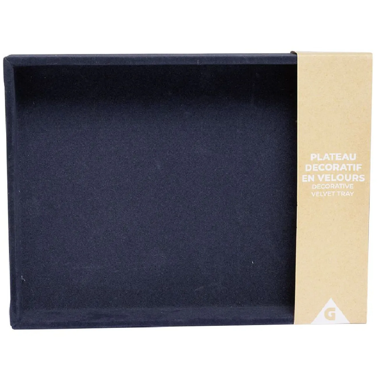 Plateau décoratif en velours bleu, idéal pour poser vos petits objets du quotidien.