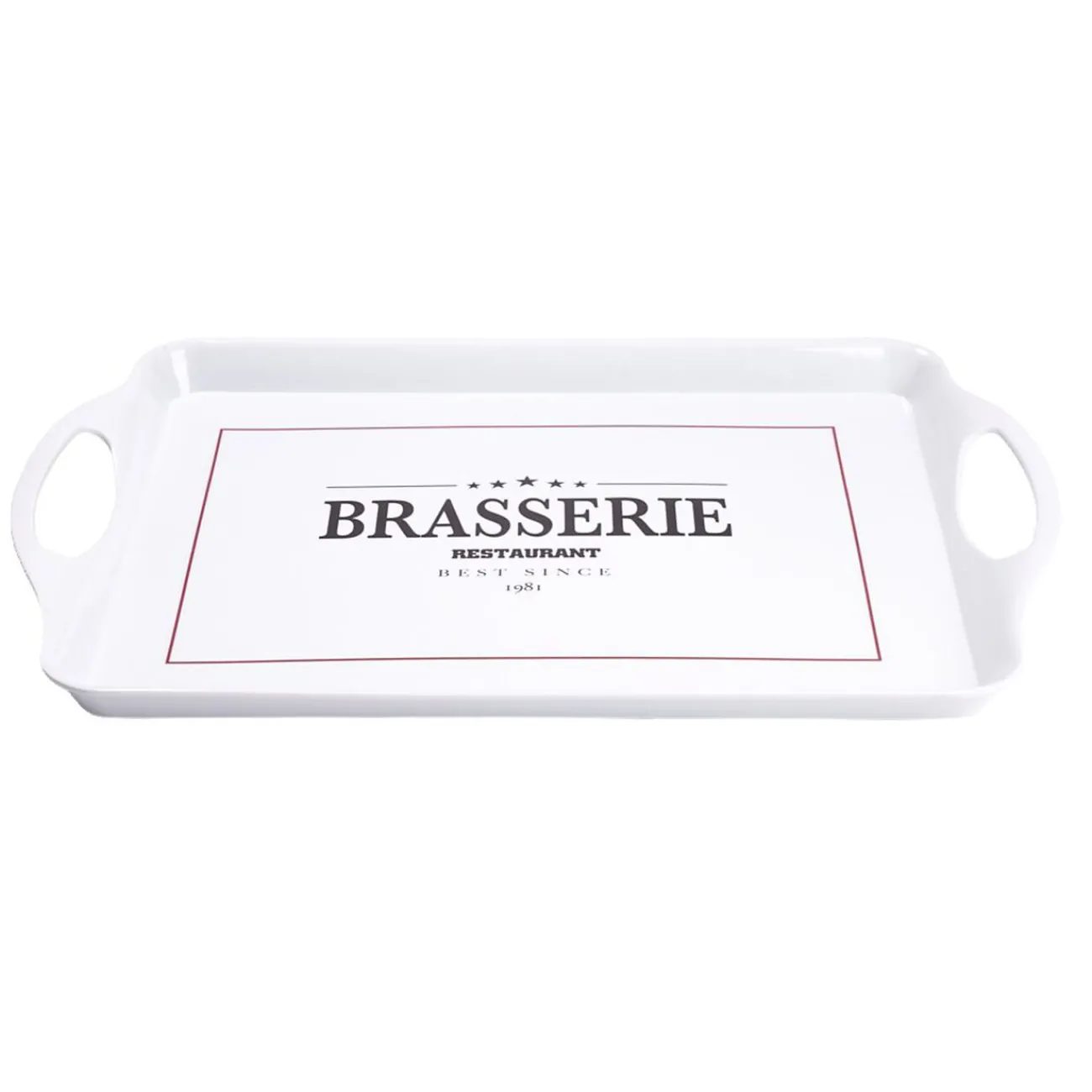 Découvrez ce plateau rectangulaire brasserie, avec un liseré rouge qui rappelle les établissements de restauration traditionnels.