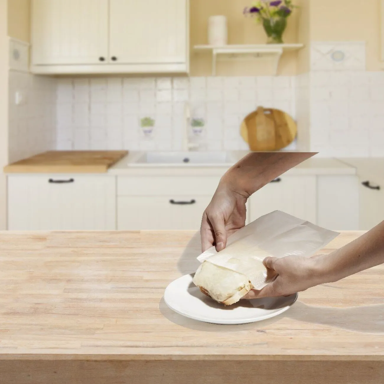 1-Glissez votre sandwich dans la pochette.
