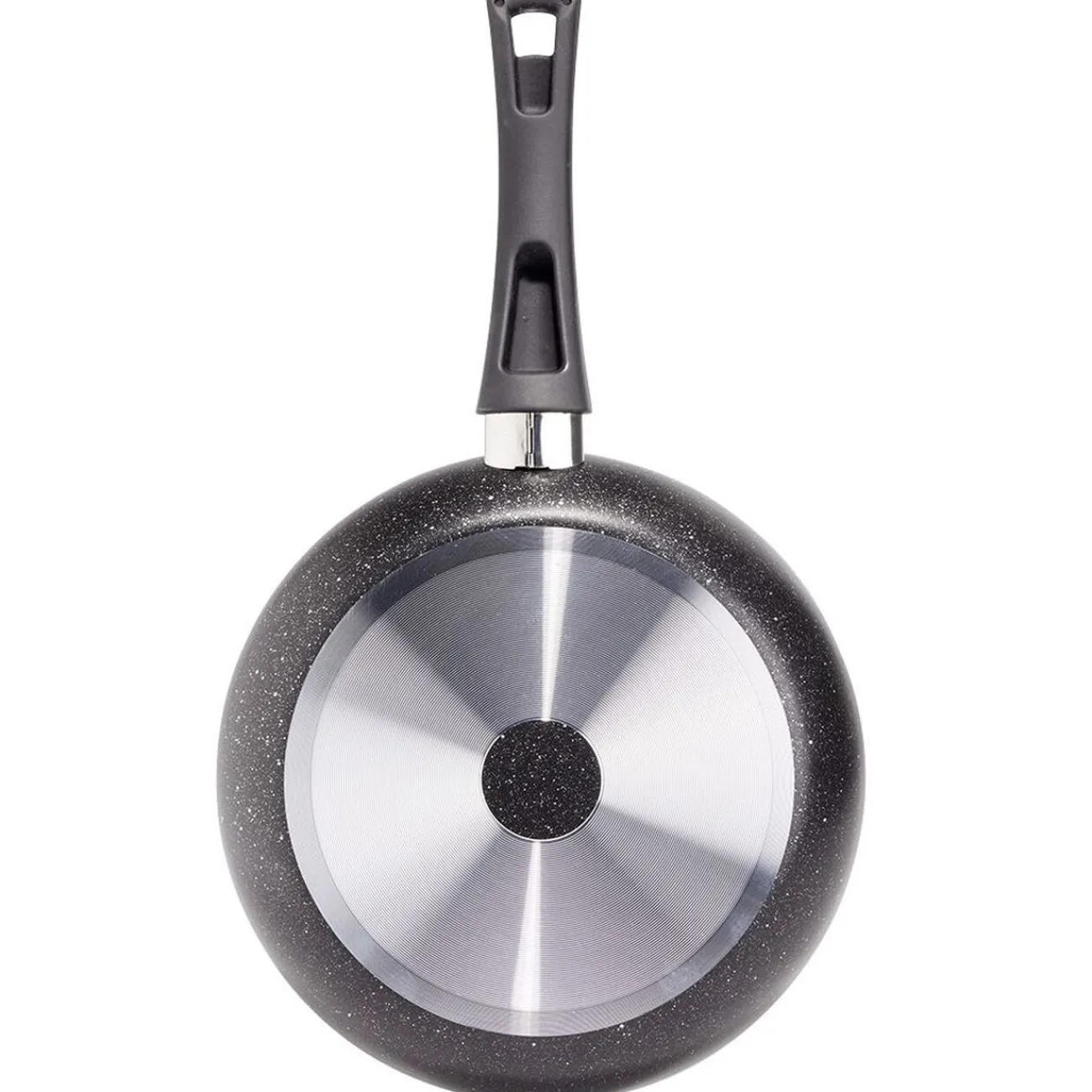 Poêle antiadhésive noire compatible tous feux sauf induction.