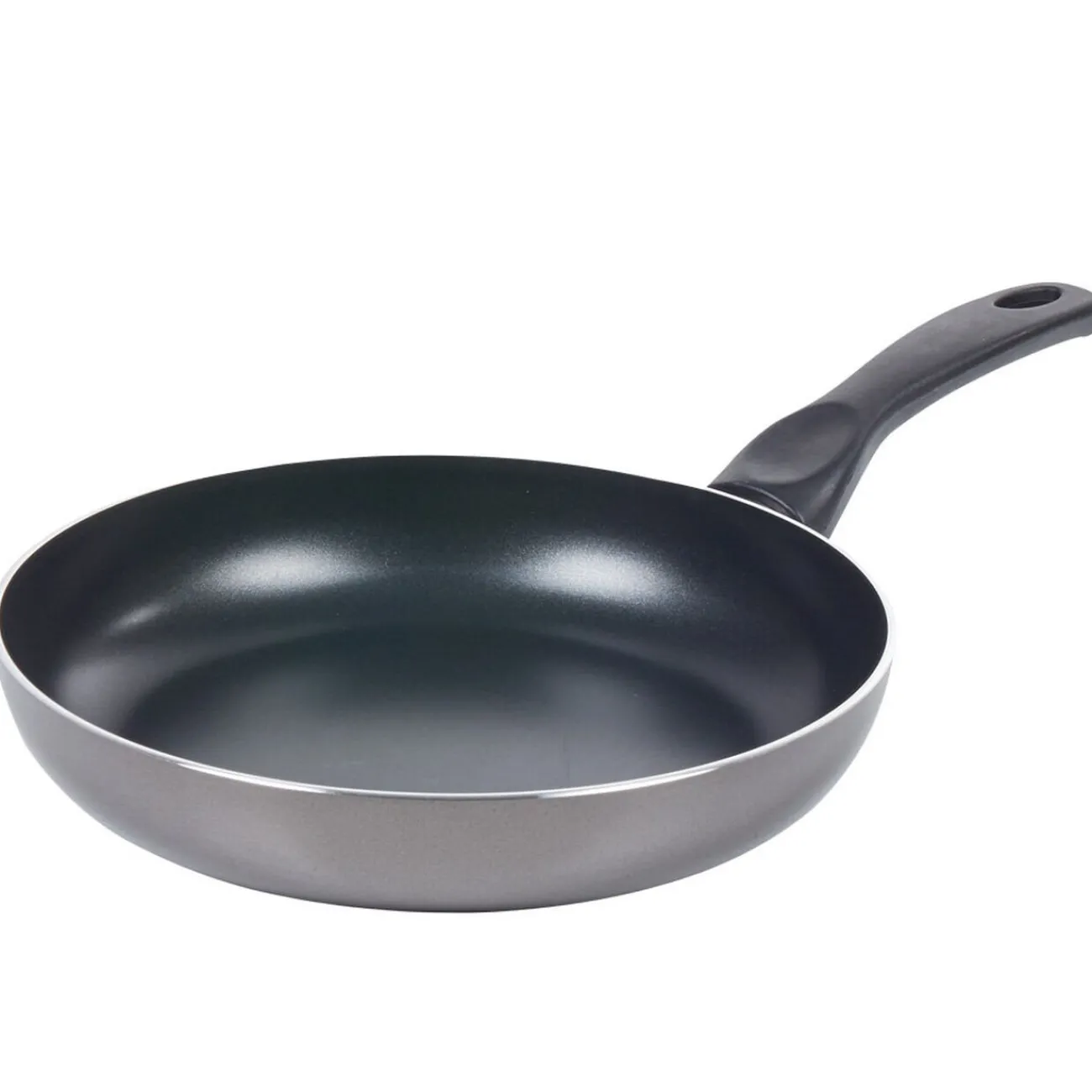 Poêle grise en aluminium, revêtement anti-adhérent, ø 24 cm, tous feux sauf induction.