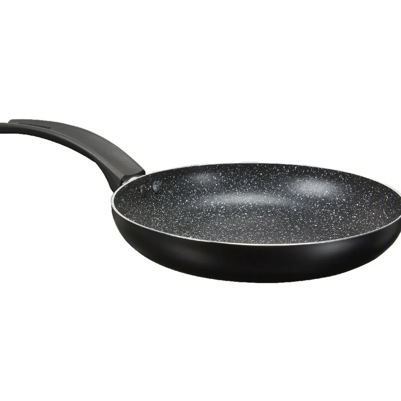 Lot de 2 poêles noires avec intérieur effet pierre, toutes deux spécialement conçues pour les plaques à induction.