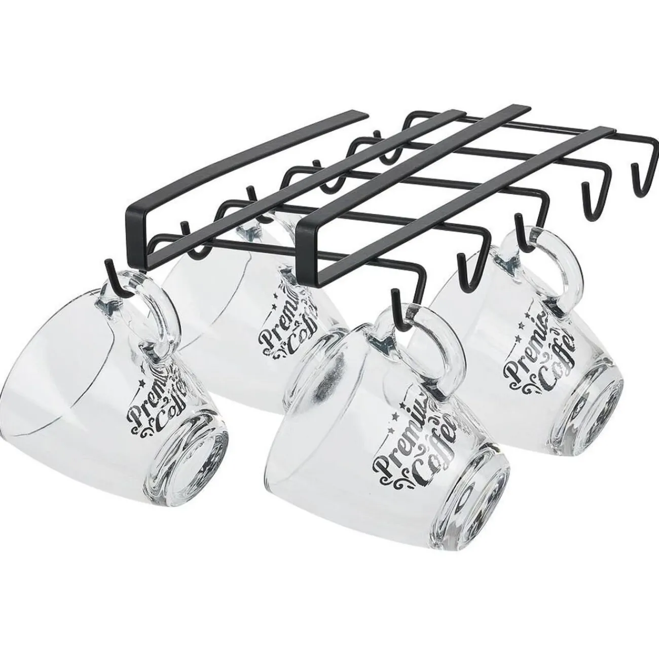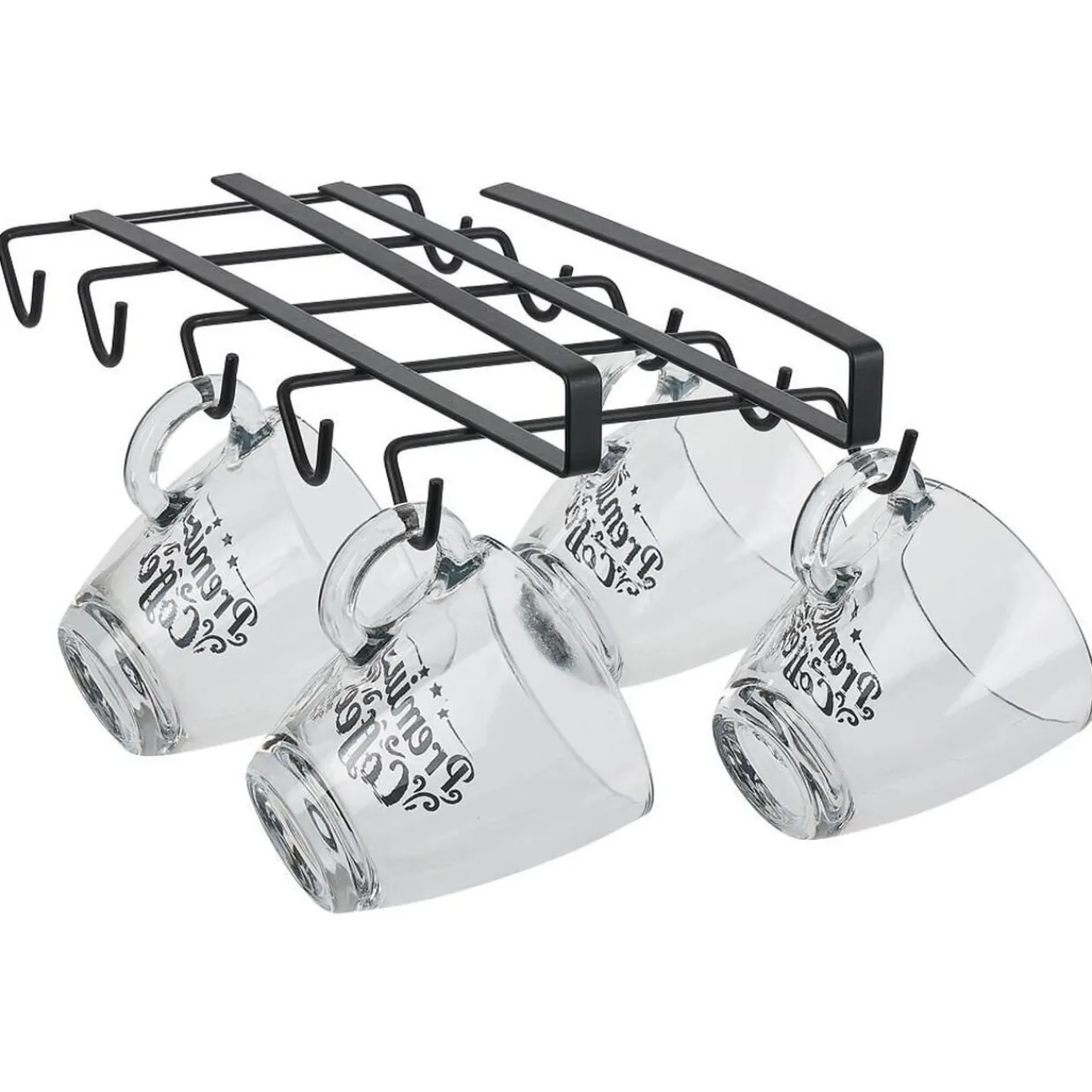 Porte-mugs pour étagère avec 10 crochets en métal noir. Idéal pour accéder facilement aux verres et un rangement optimal dans vos placards.