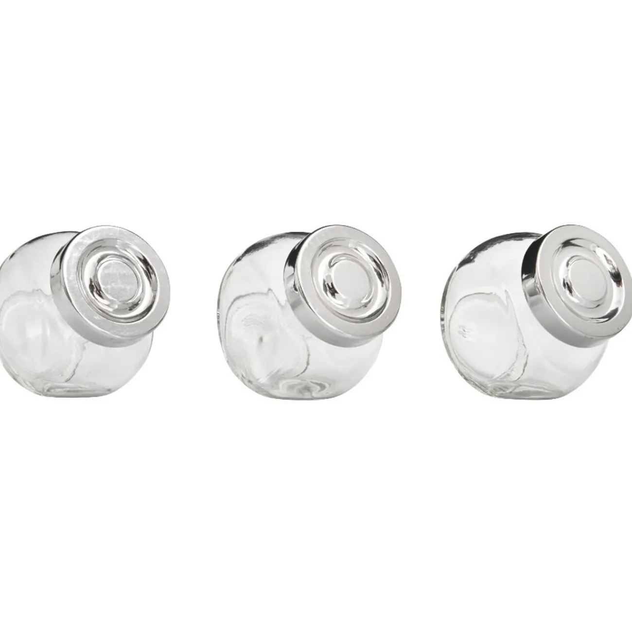 Lot de 3 pots à épices en verre avec couvercle inox.