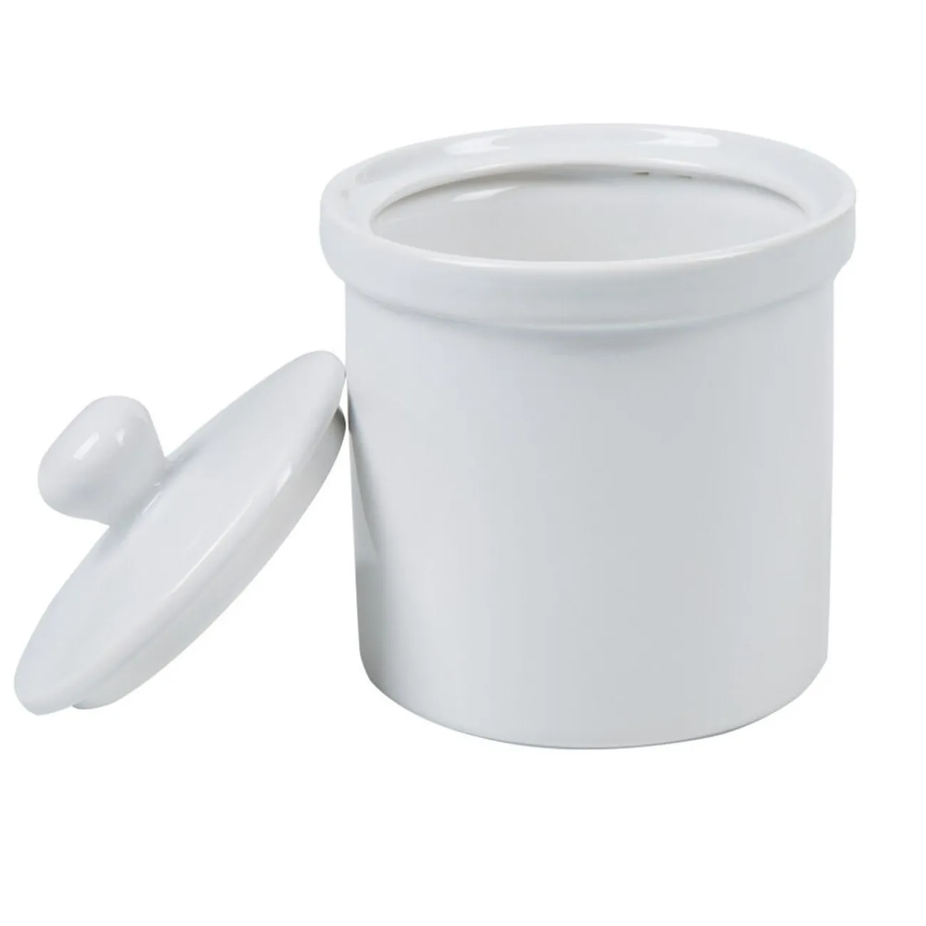 Pot avec couvercle en grès blanc, dim. Ø13xh.13 cm.