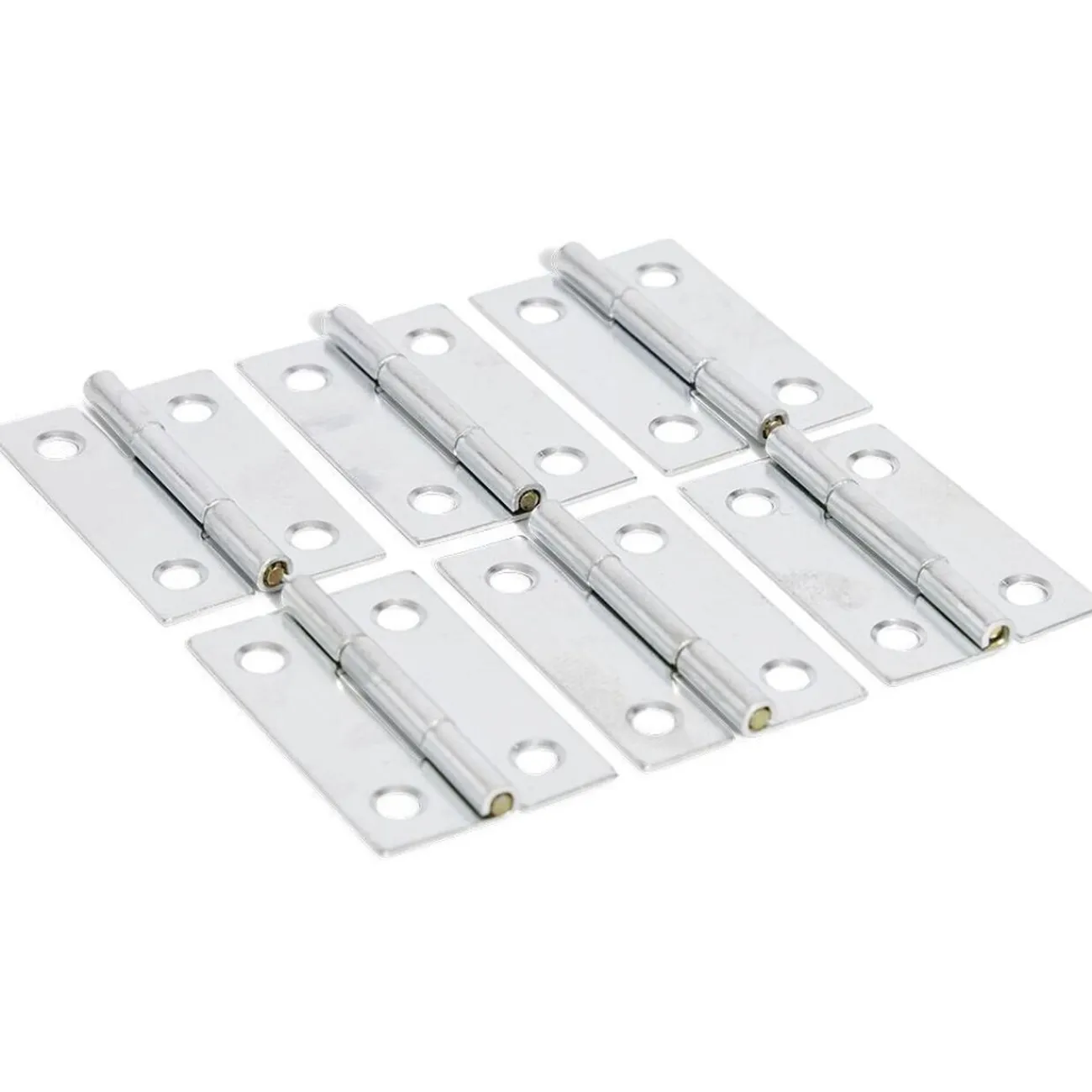 Lot de 6 charnières en acier de 40×25 mm pour meubles et portes légères.