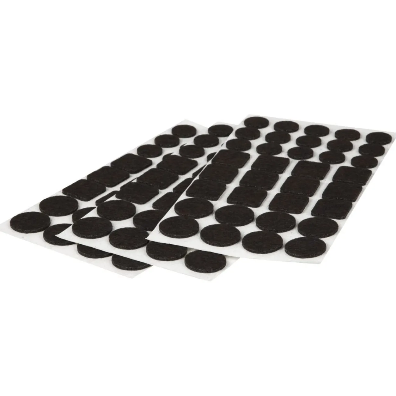 Lot de 105 patins en feutre carrés et ronds.