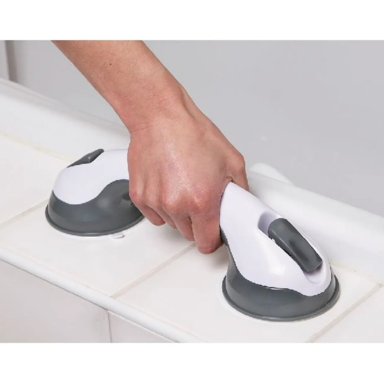 Poignée de L. 29,5 cm, 2 ventouses, fixation sans clou, ni vis, plastique.