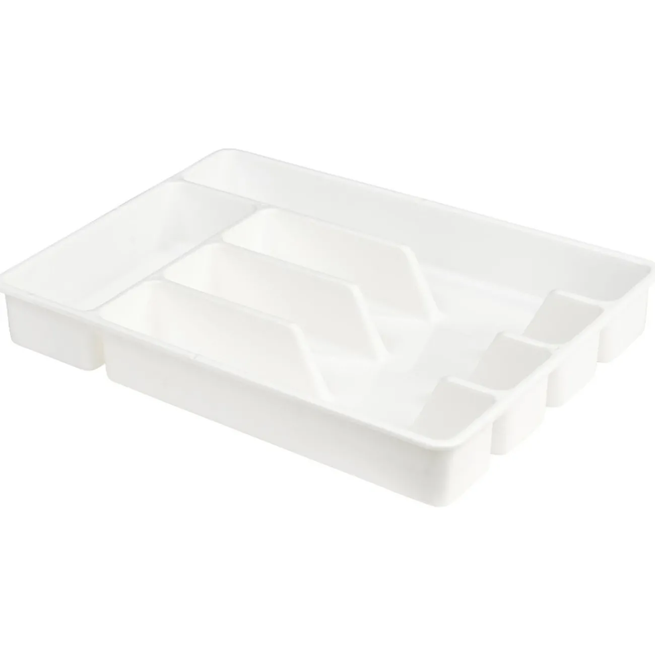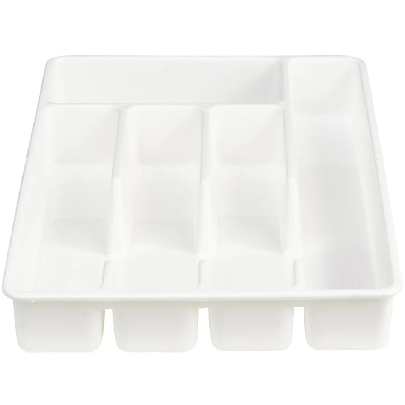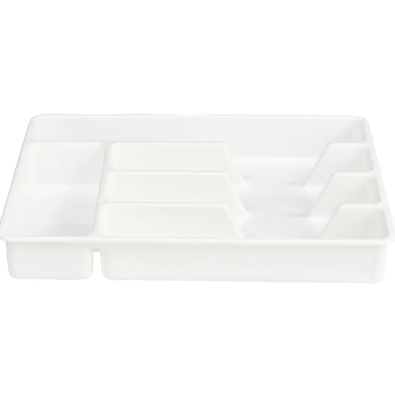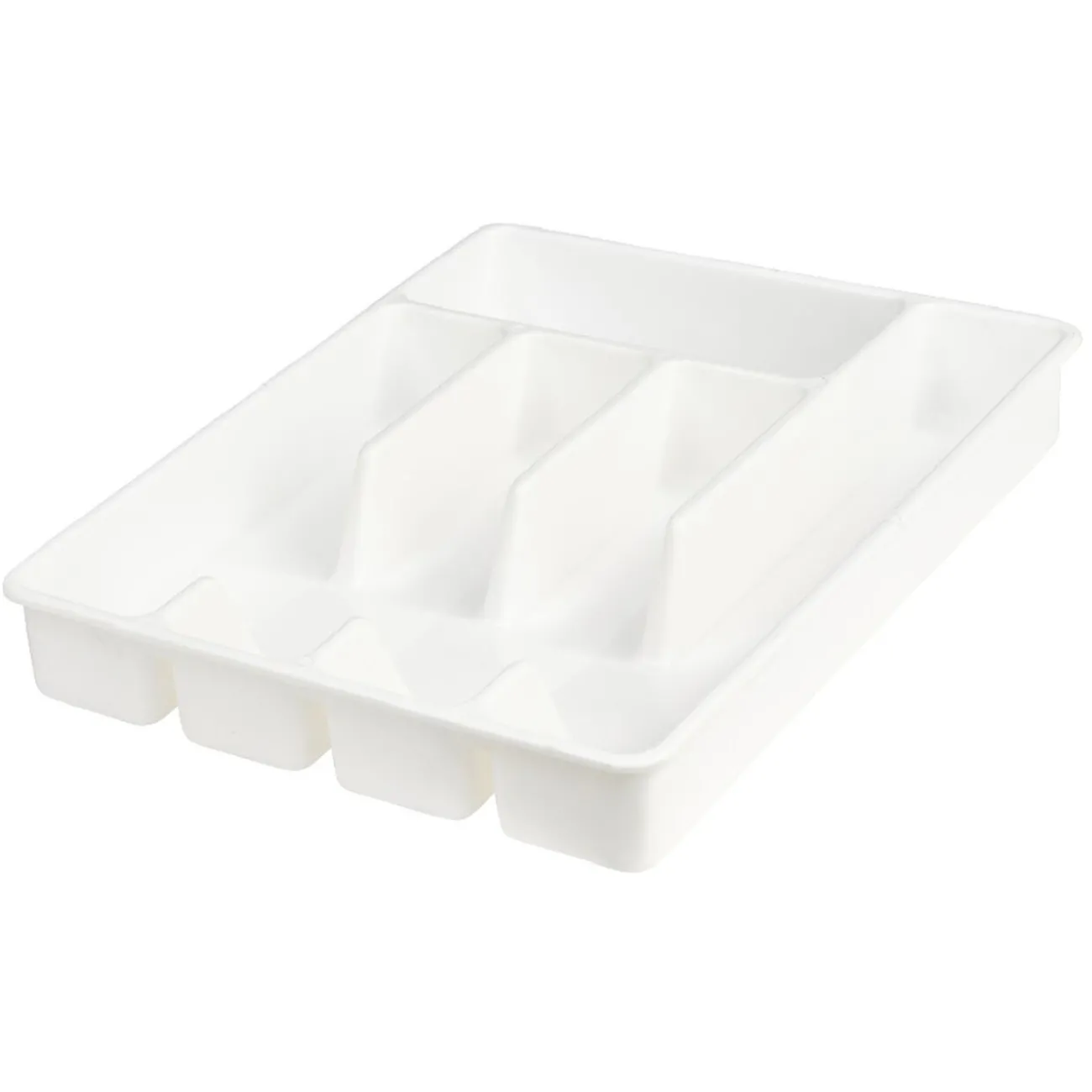 Range-couverts en plastique de couleur blanche.