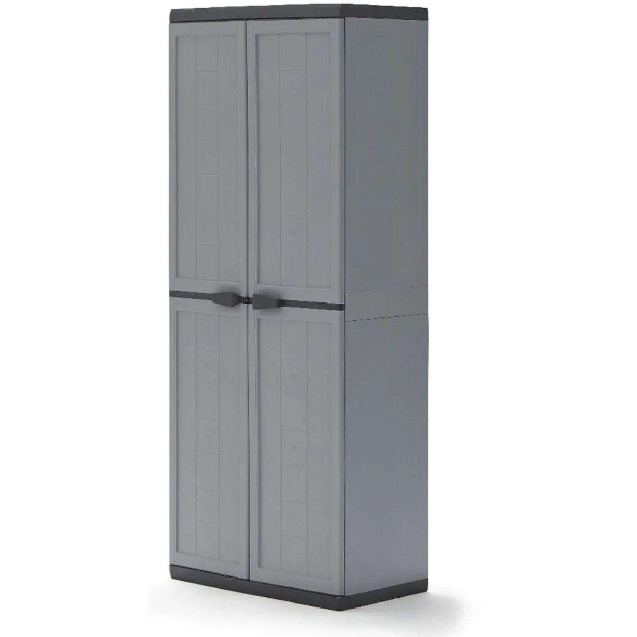 Armoire de rangement grise de la marque kis jolly, avec 3 tablettes et 2 portes.