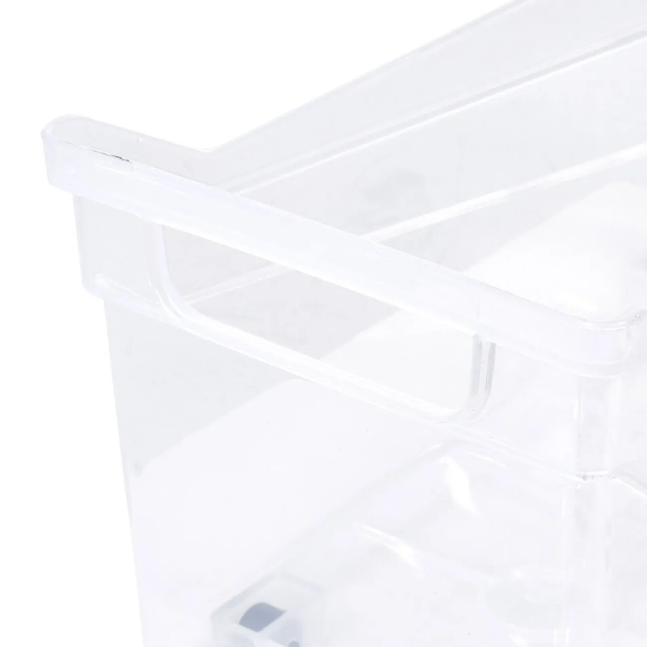 Bac de rangement à roulettes en plastique transparent doté de quatre roulettes et de deux poignées. Pratique pour ranger et transporter jouets, papiers, accessoires… d’un endroit à un autre.