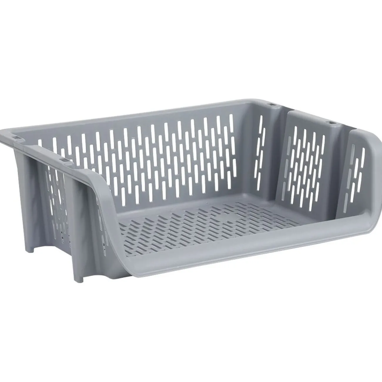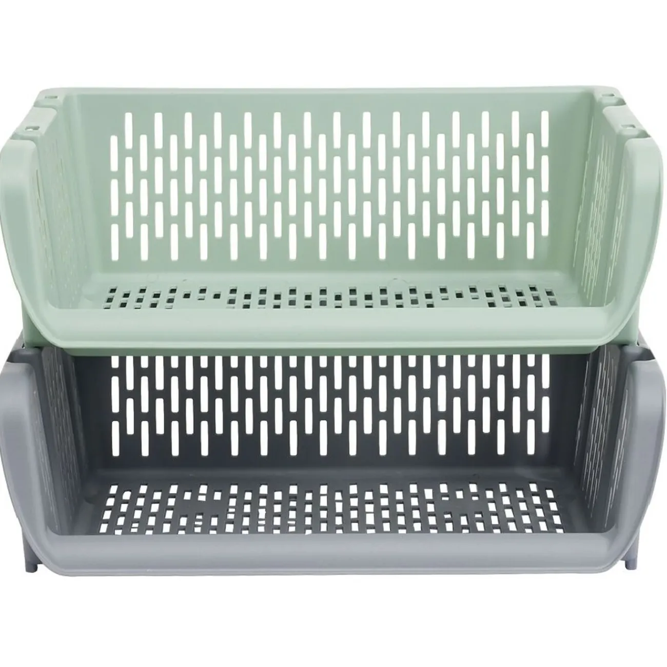 Bac superposable large en plastique ajouré vert ou gris.