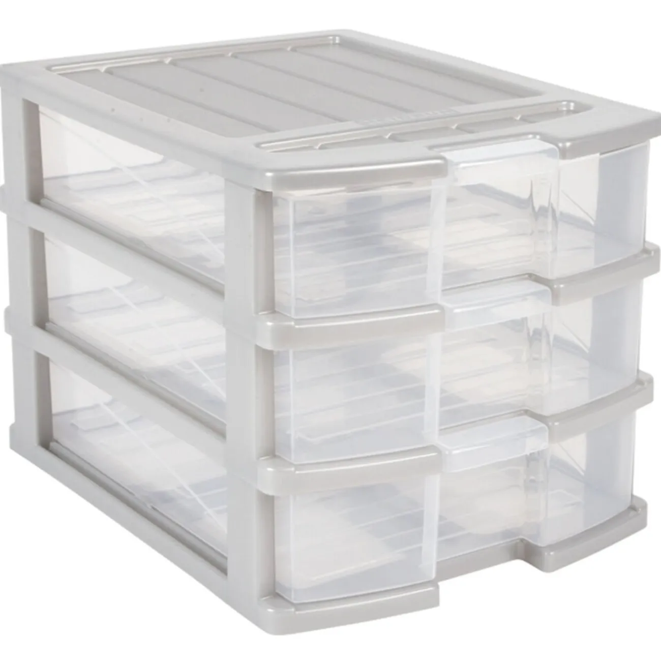 Bloc 3 tiroirs A4 gris, dim. 25x33x23,5 cm, plastique.