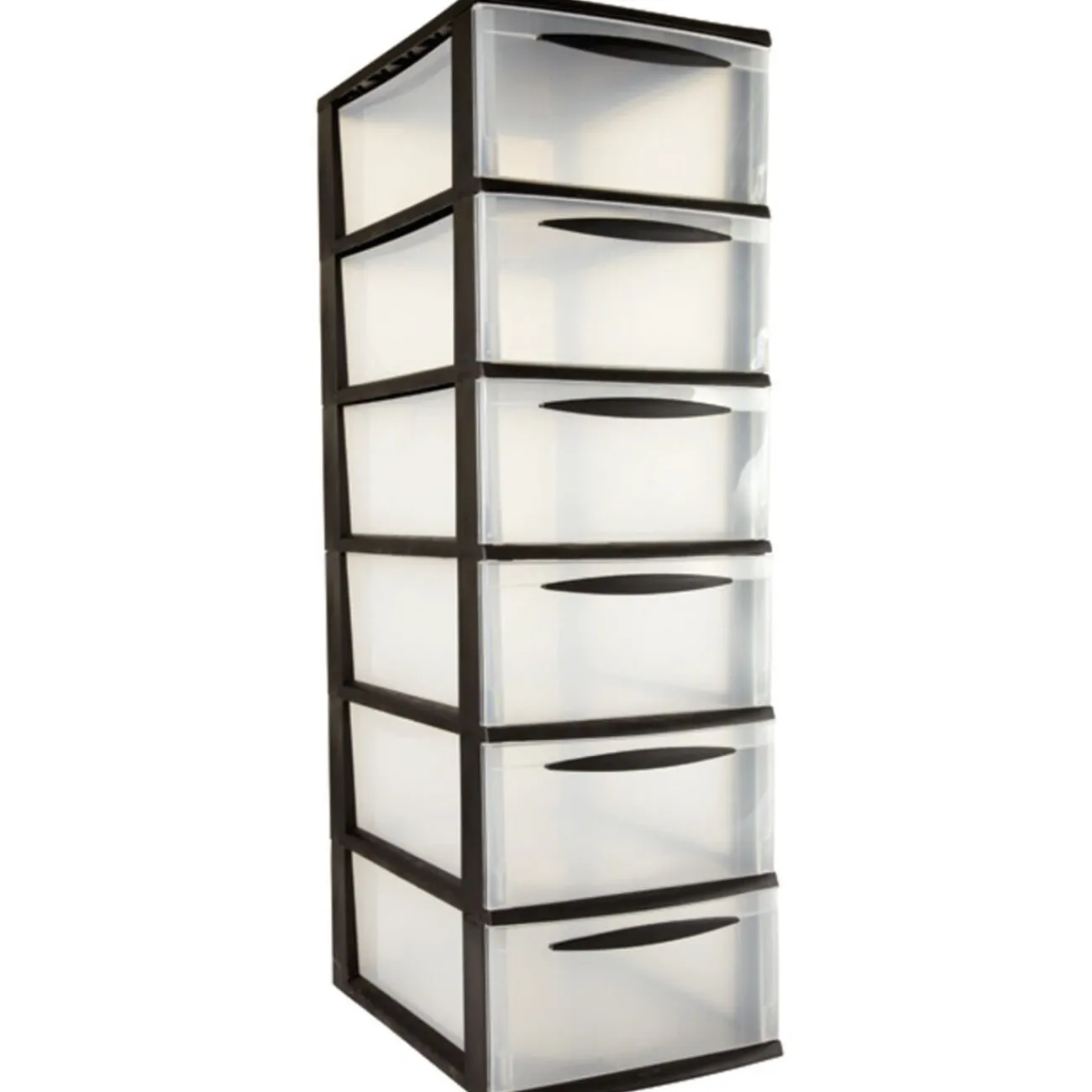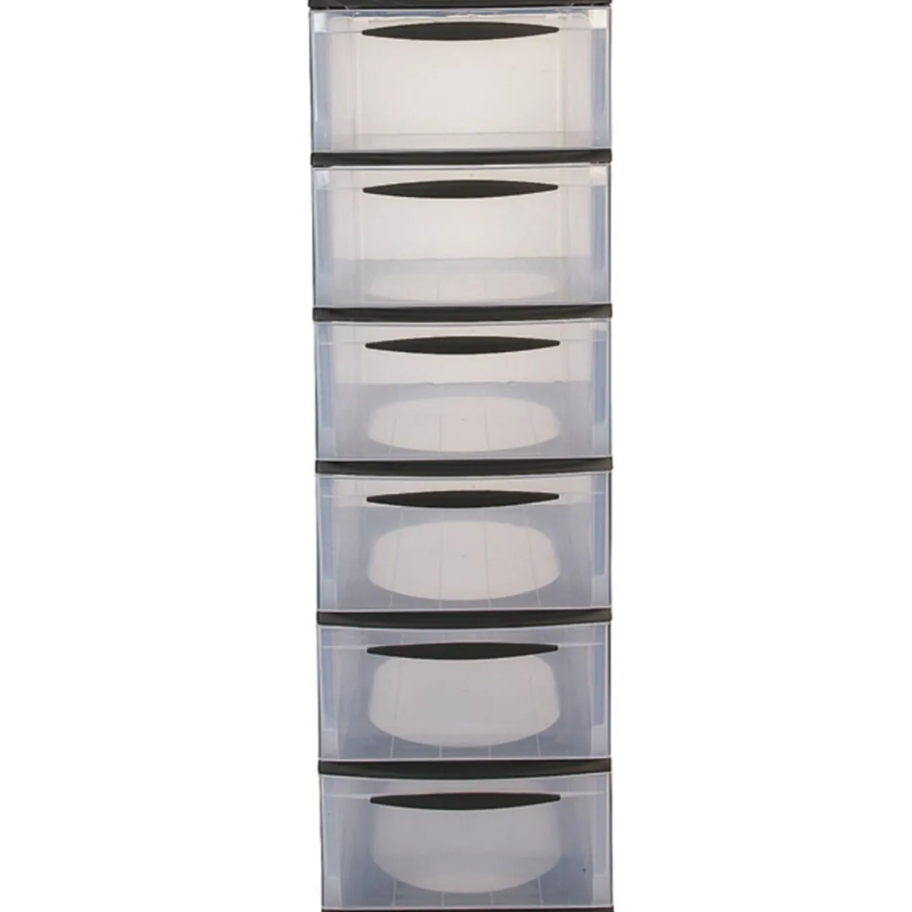 Tour 6 tiroirs, dim. 25,5x35xh81 cm, plastique. Tiroirs transparents, contenu visible, multiusage.