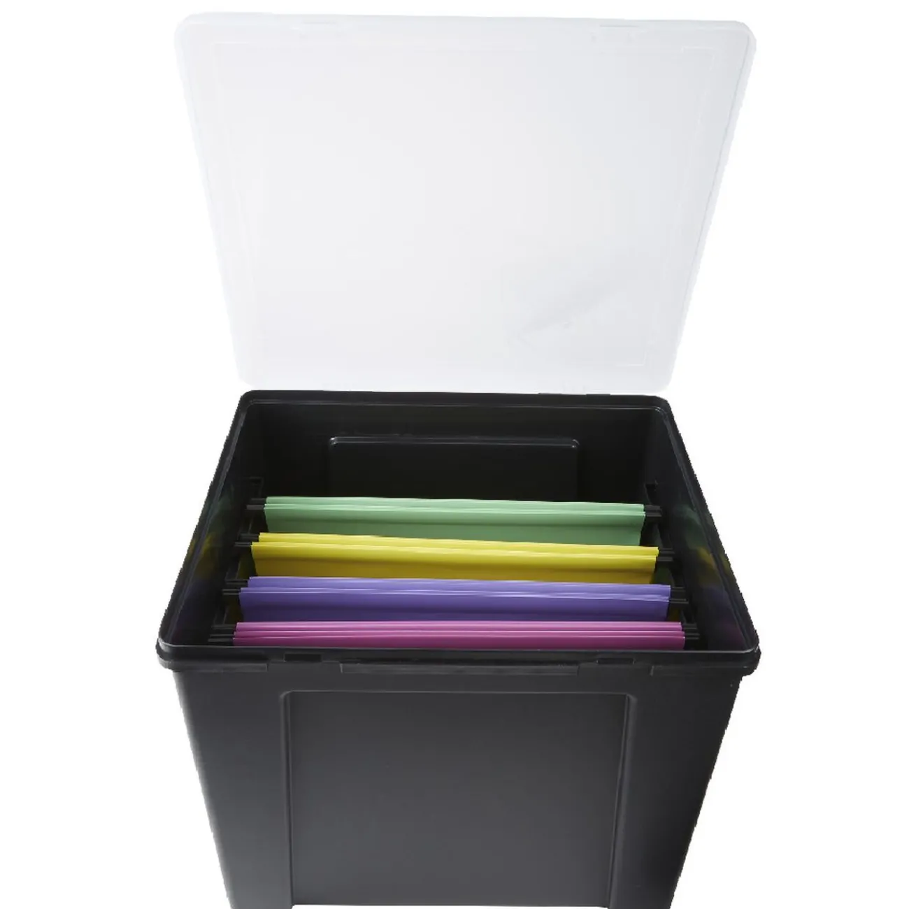 Gardez vos papiers soigneusement rangés dans cette boîte de classement en plastique noir. Dotée de 8 dossiers suspendus, cette boîte de rangement comprend également un plateau amovible transparent et compartimenté pour y glisser stylos, crayons, papier A4 et accessoires comme dans un vrai bureau.
