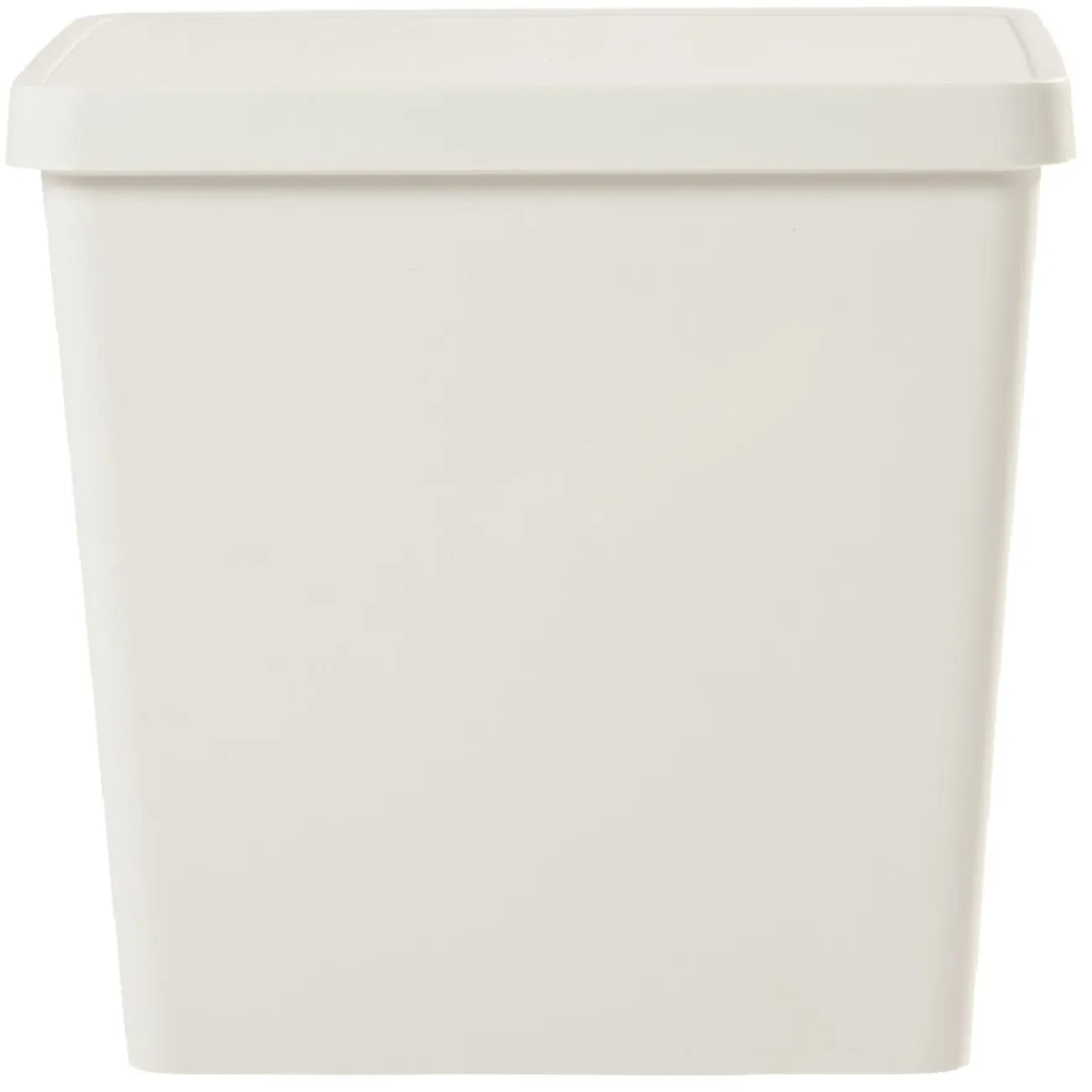 Optimisez votre rangement avec cette boîte en plastique beige munie d’un couvercle.