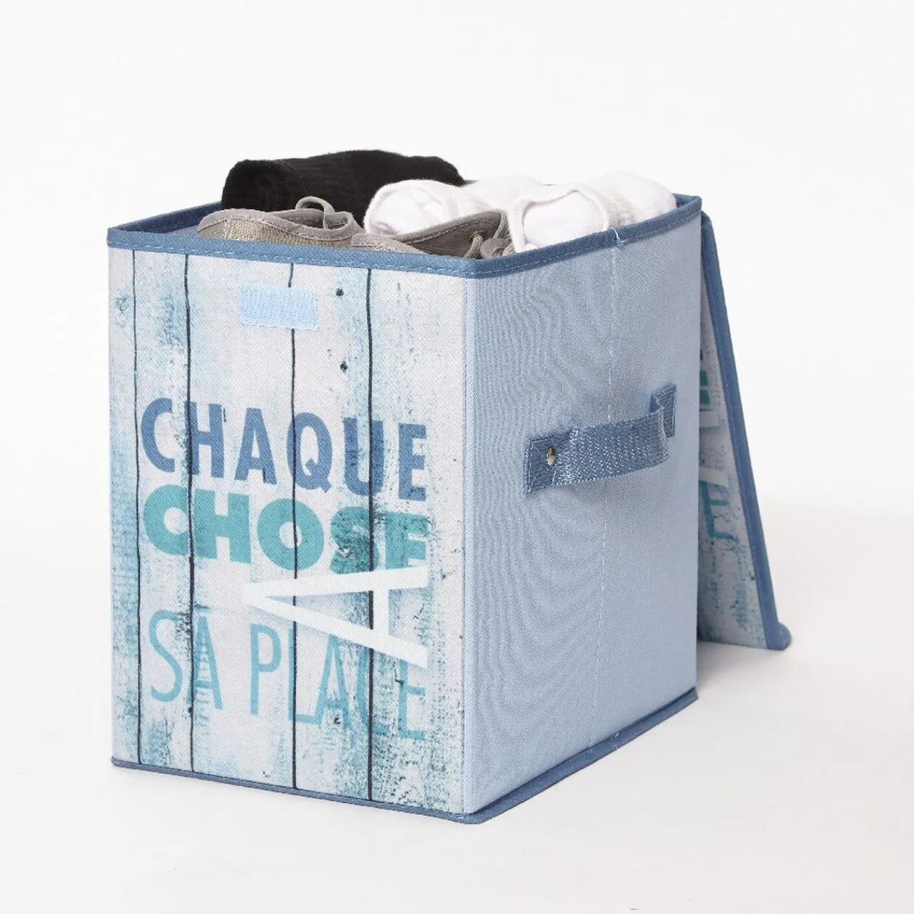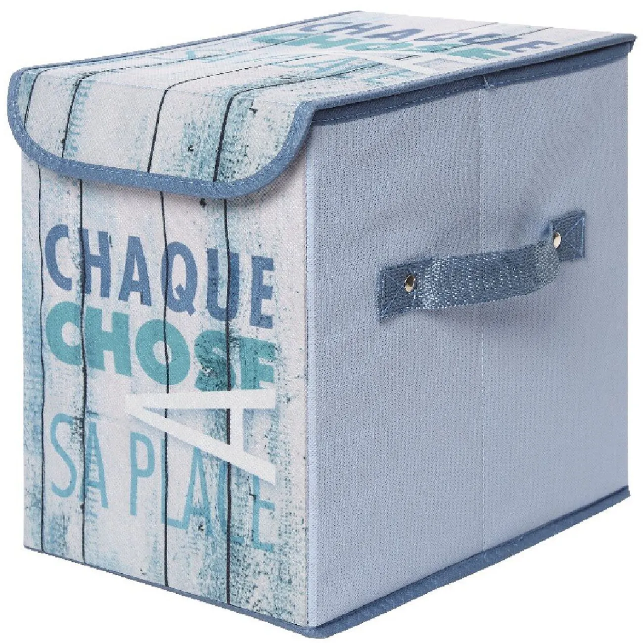 Boîte de rangement étroite avec inscription chaque chose à sa place, dim. 28x21x28 cm, carton et polypropylène.