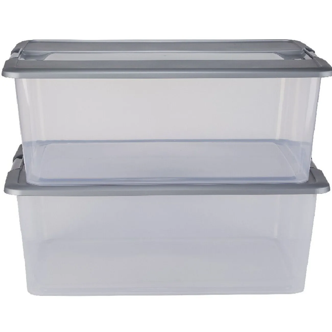 Gifi Rangement|Boîte de rangement Kliker avec couvercle clips gris 35 L x2