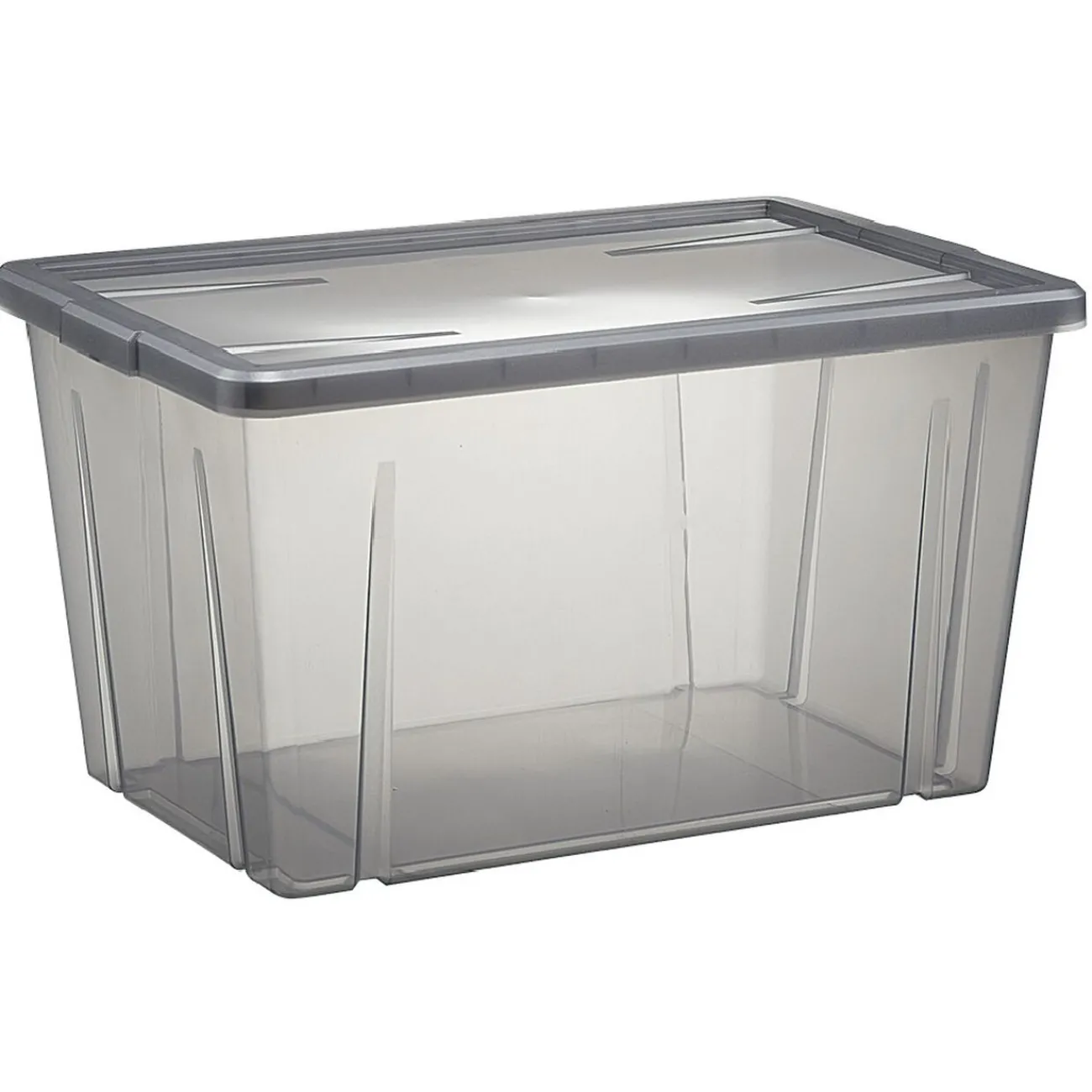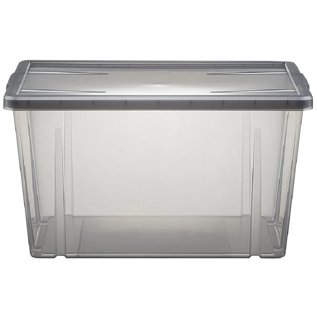 Boîte de rangement noir transparent avec couvercle.