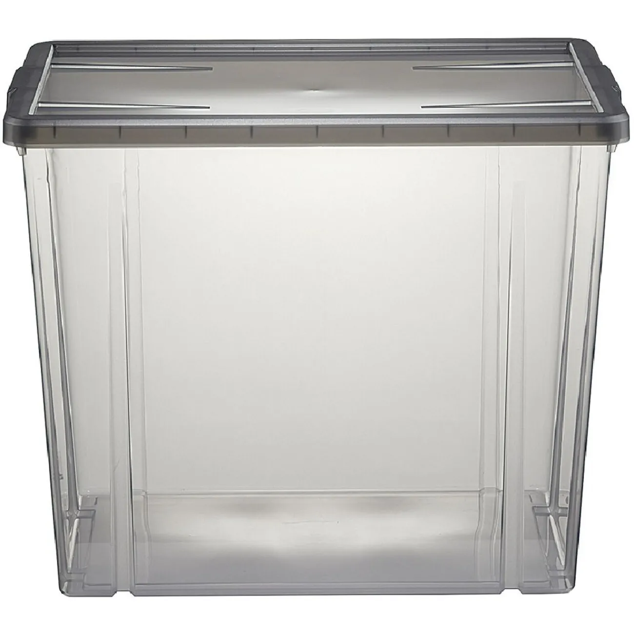 Boîte de rangement noir transparent avec couvercle.