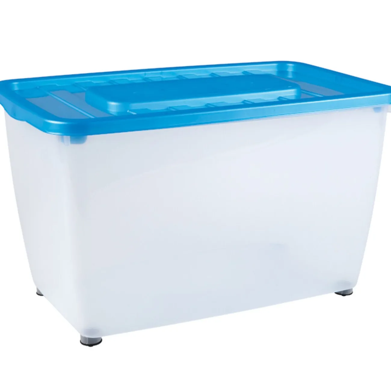 Boîte de rangement plastique à roulettes 46 L, dim. 56x37xh.34 cm, empilable. Diff. coloris, disponibilité selon arrivage.